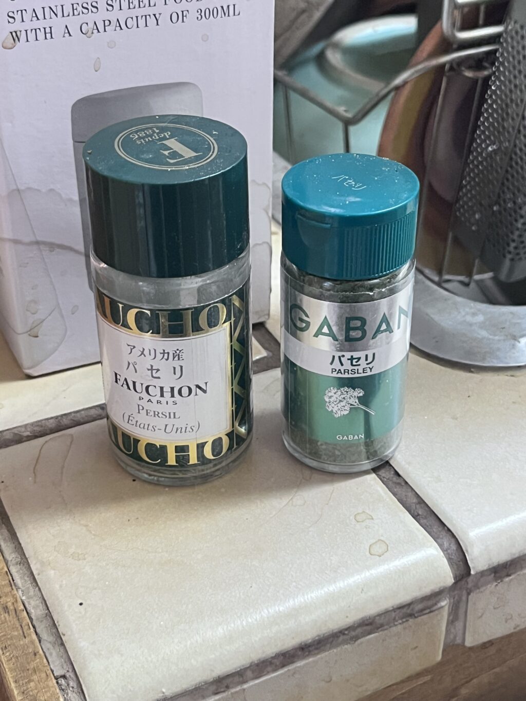 2025年4月13日 / 最終更新日時 : 2025年4月15日 hashimoto トホホ 妖怪「パセリくすね」の仕業。 粗挽き胡椒とパセリは、ワシにとって欠かせない調味料で、スープや目玉焼き、パスタなど、洋風の料理には、大抵かけている。 ところが、最近、相次いで、パセリがなくなる事件、勃発。 一個目なくして、かなり捜索したが出て来ず、やむ […]