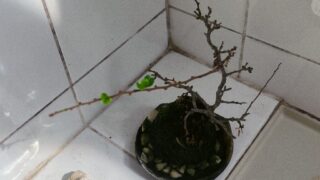 9月、三泊の旅行から帰って、すぐに体調崩して、風呂も入らなかったので、しばらく、水やるのを忘れてた風呂場の紅長寿梅。葉っぱが全部落ちて、「枯れてしまったか、ごめんなさい!」と思ってたんですが、しばらくマメに水やりながら見 … 続きを読む 復活、紅長寿梅。