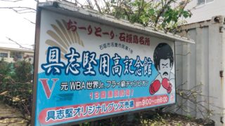 さて、何をしよう。と、考えて、ふと気がついた。こんなに何回も石垣島来てるのに、あそこに行ったことがなかった。 雨の日にはちょうどいい。タクシーでワンメーターくらい。あ、石垣島のタクシーの初乗りは460円。運ちゃんに「具志 … 続きを読む 具志堅用高記念館。