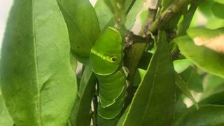 変態して、緑になってた。アゲハ幼虫の現在。 見つけるたびに処置してたけど、大きくなるまで、見つけられなかったのは、怖くて、手が出せない。ワシの負けと認めて、成長を見守ることにした。 現在、113勝1敗。113匹全部がこん … 続きを読む アゲハ幼虫の現在。