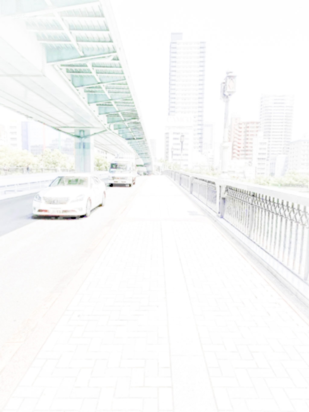 人や車の輪郭もぼやけてるので、
