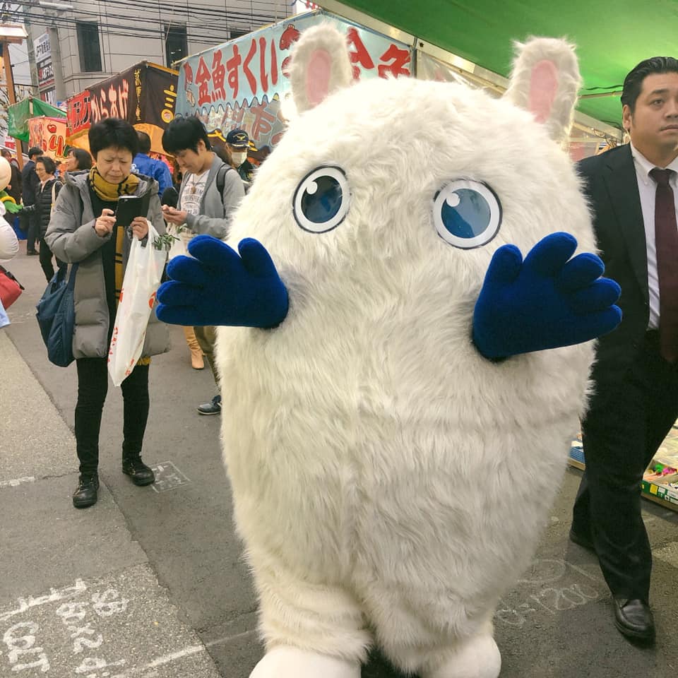 道修町に並ぶ各製薬メーカーのキャラクターが