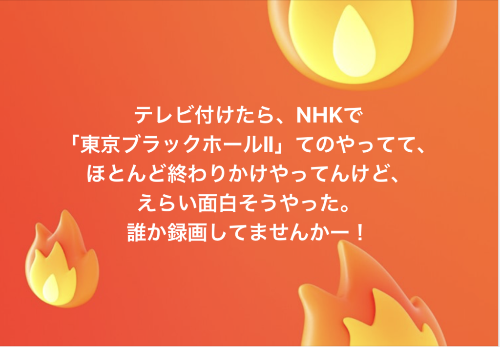 平井さんに教えてもらって、「東京ブラックホールⅡ」観られた。