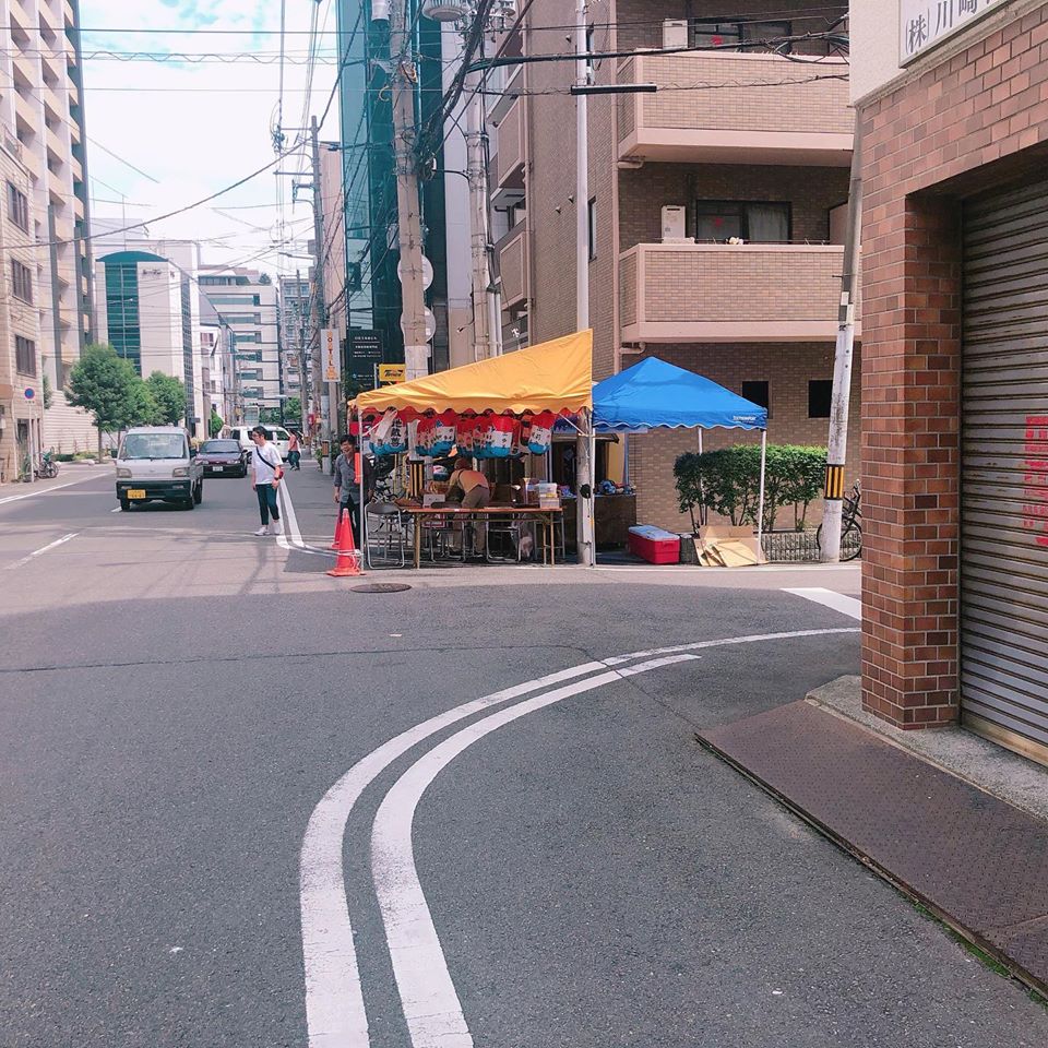 家のすぐそばのマンションの前では地蔵盆の準備。