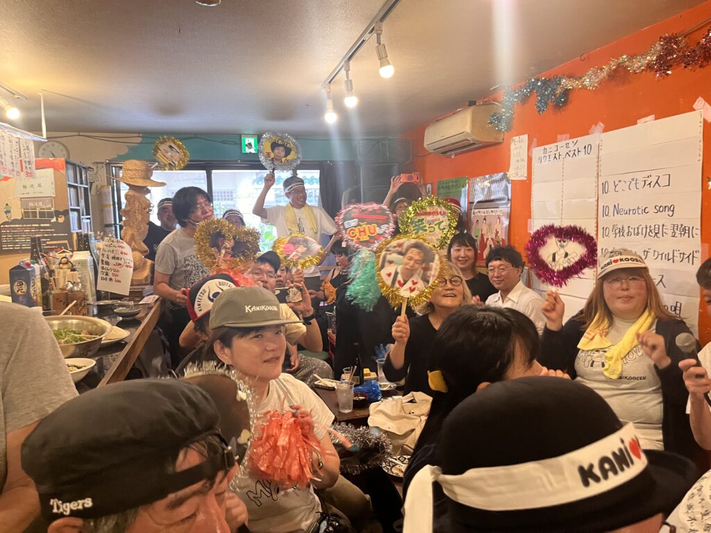 カニコーセンうちわや、カニコーセン祭壇も、場を盛り上げてくれる。