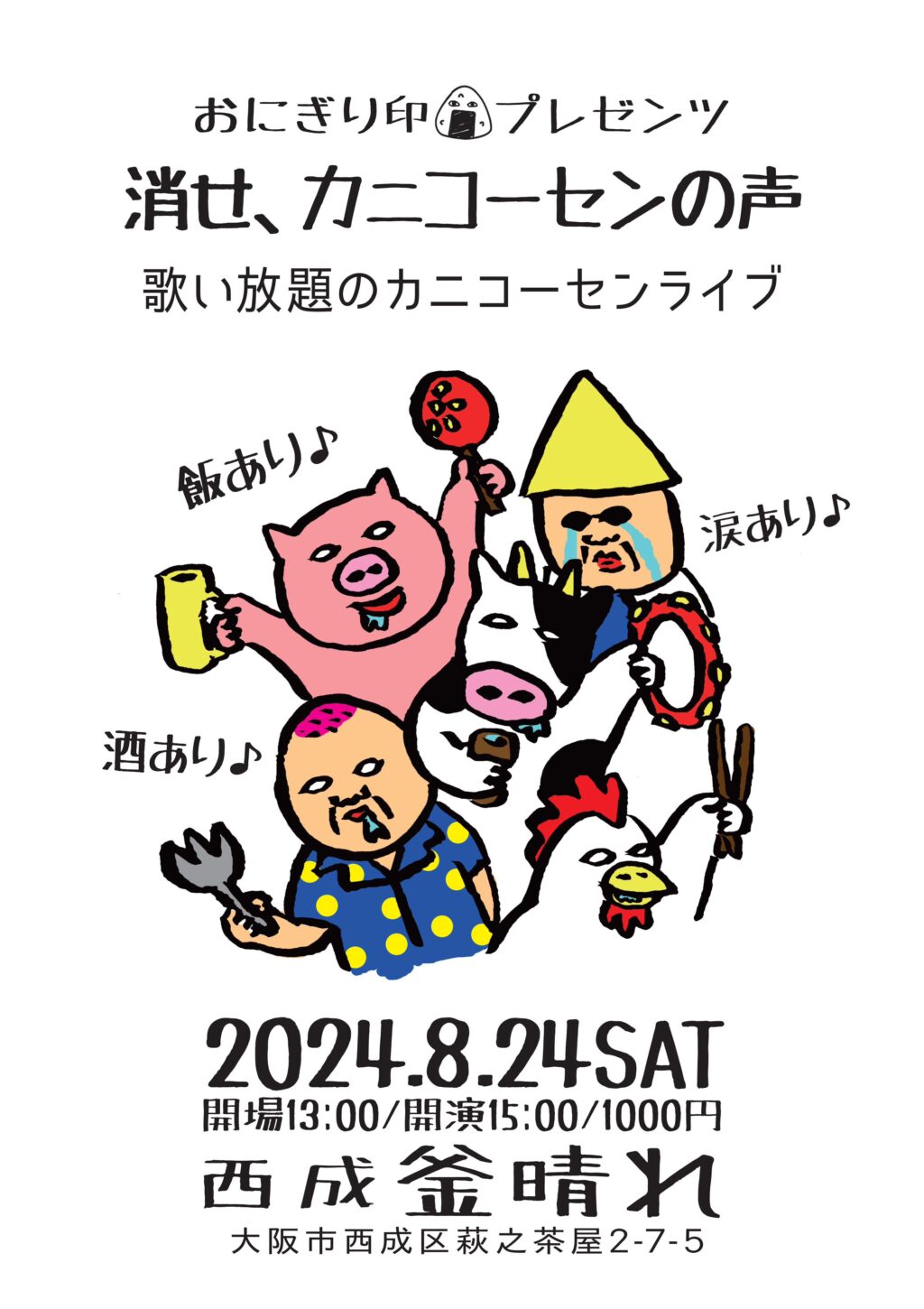おにぎり印プレゼンツ「消せ!カニコーセンの声を」歌い放題のカニコーセンライブ@釜晴れ、の開催日でした。