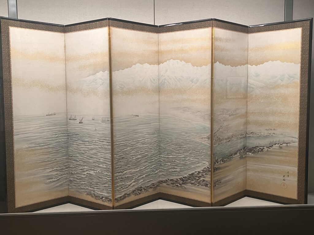 入口近くにあった富山湾と立山の屏風で、