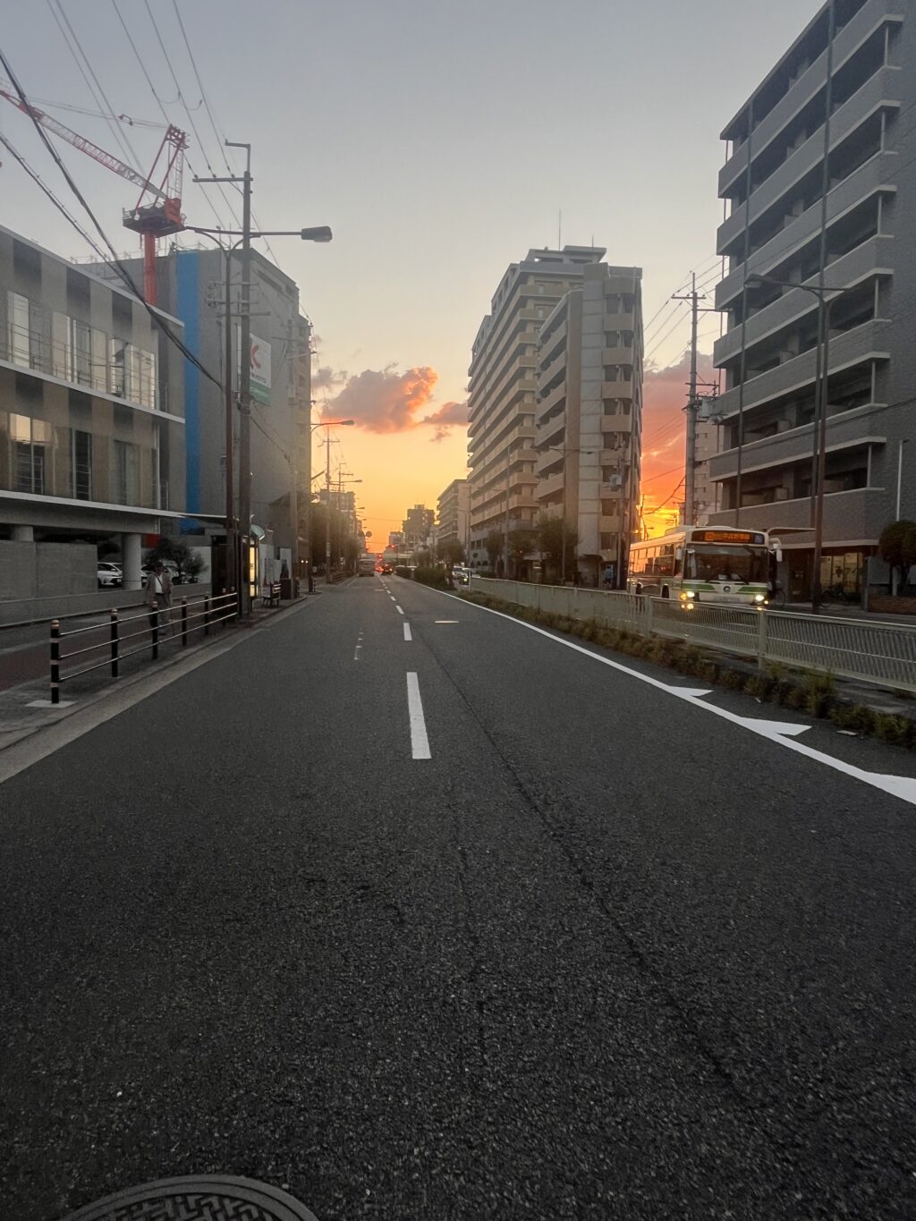 帰り道、道を渡る時、夕陽が綺麗で写真撮ってたら、