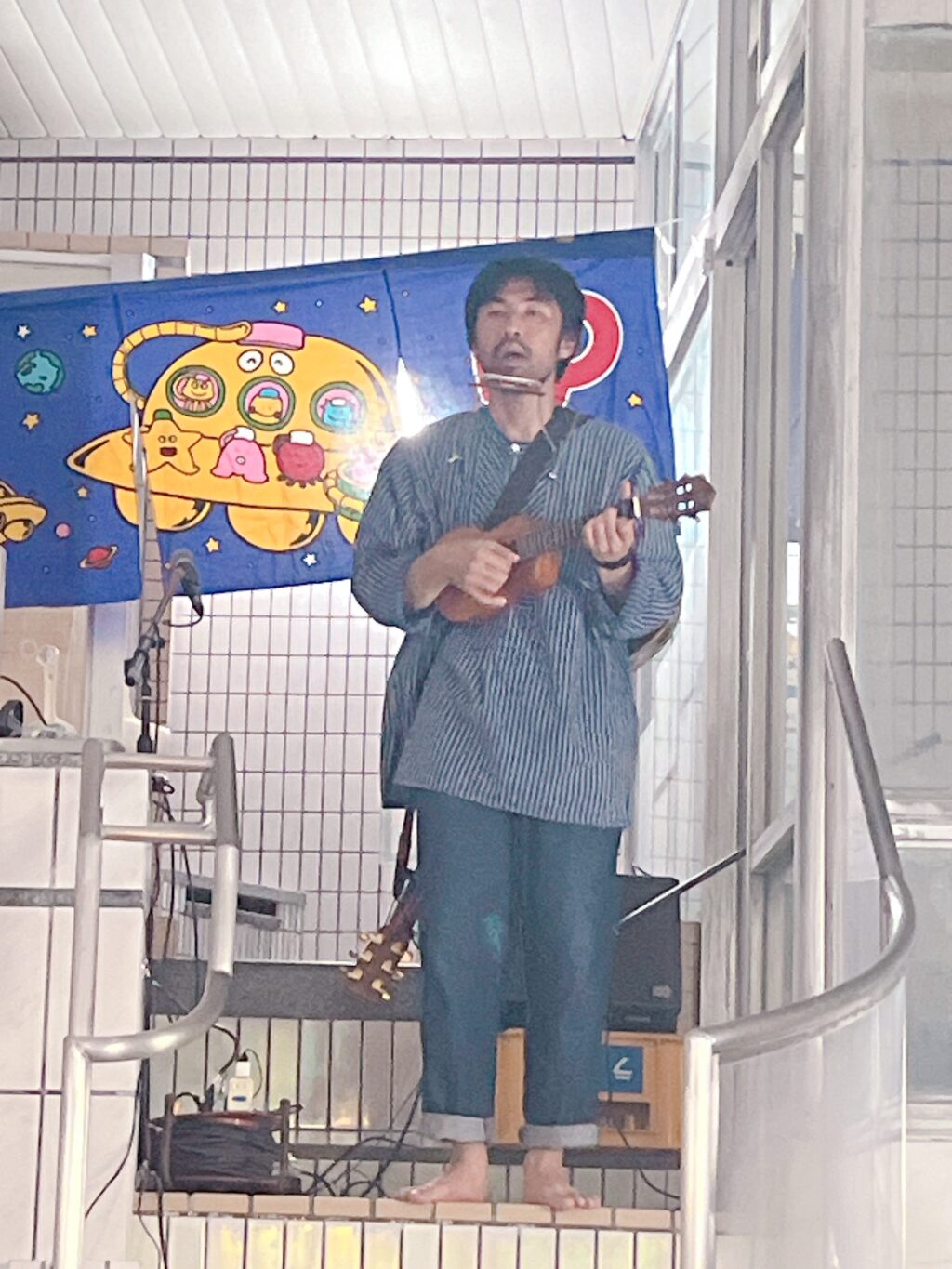 おや!ウクレレとブルースハープで、しかも生音で、何なさる?