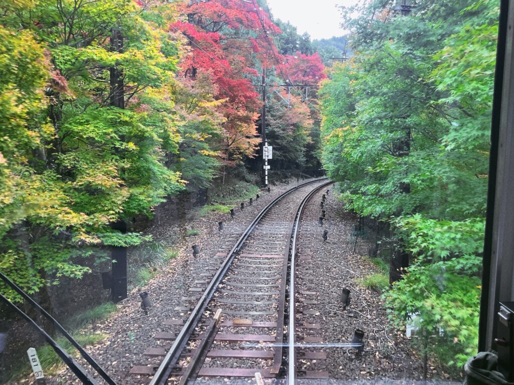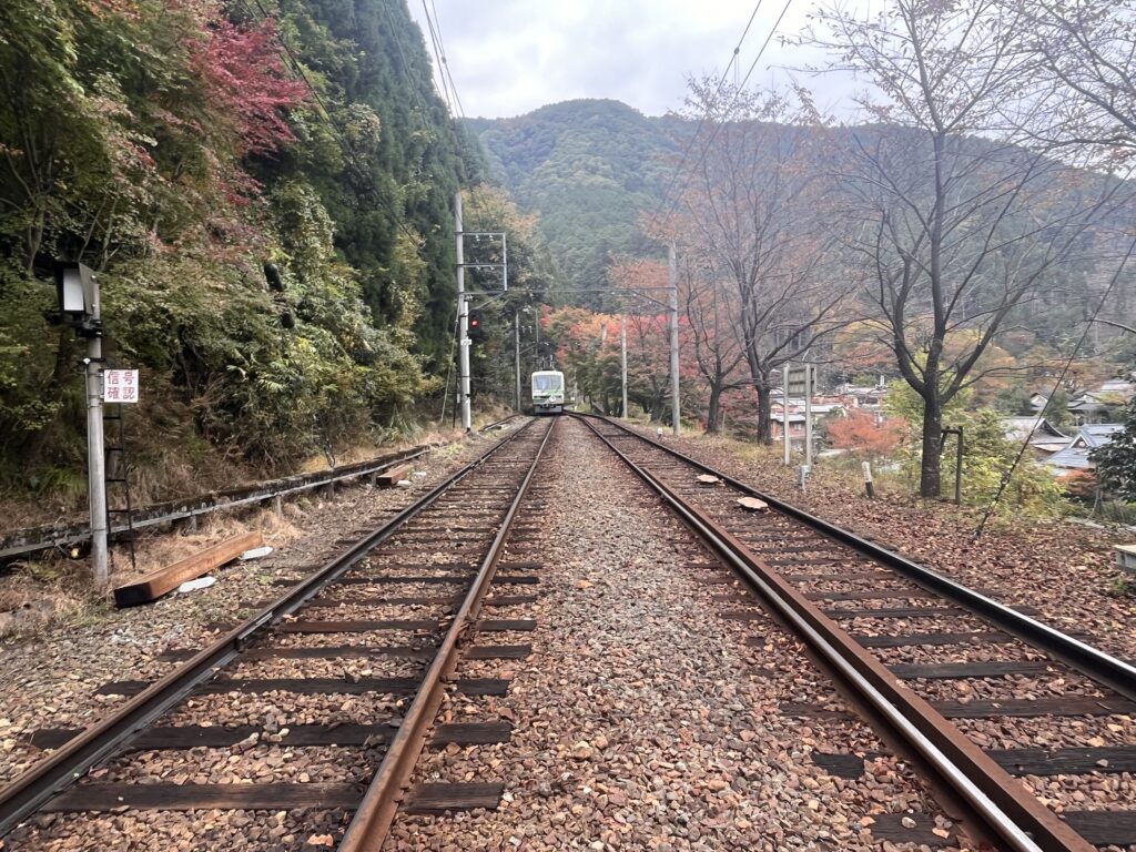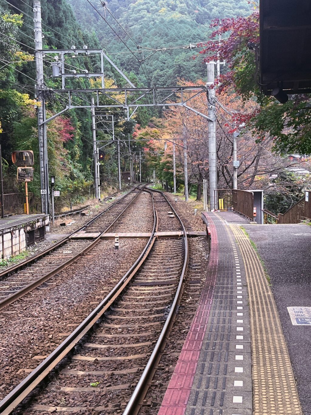 そうか!ここは有名な紅葉のトンネルの抜けた先の駅なんや!(市原〜二ノ瀬間)