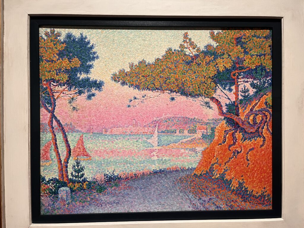 この点描、拡大すると、ほんまにいろんな色が隣り合わせになってて、