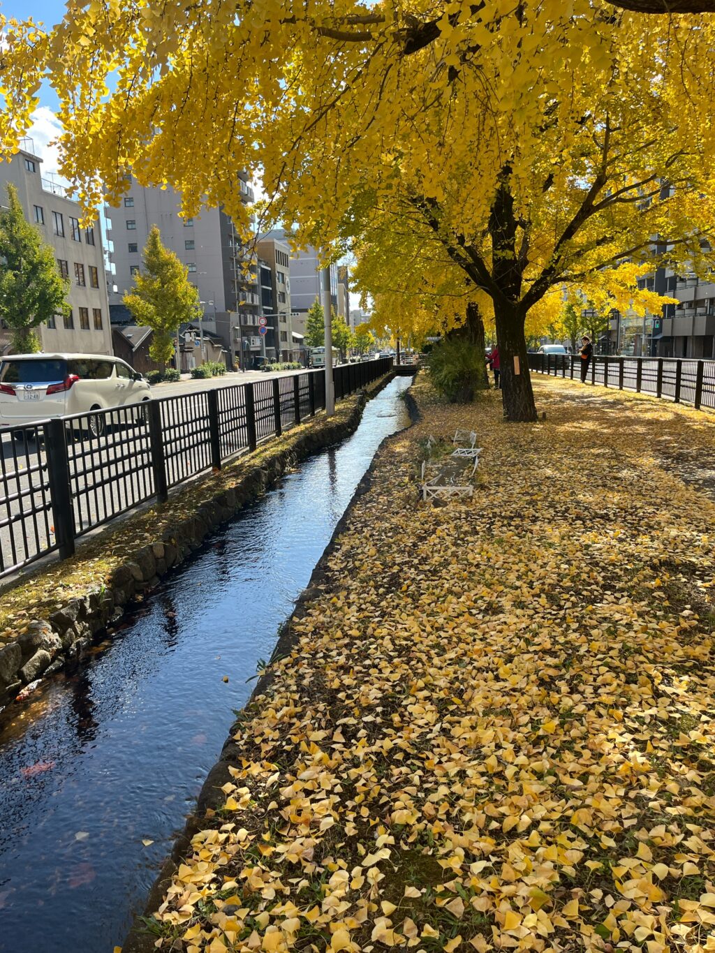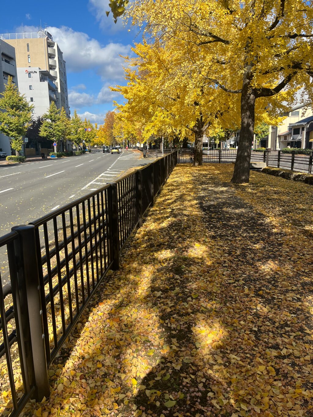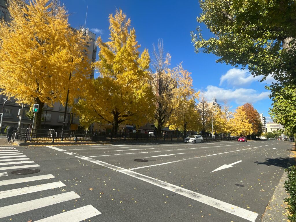 歩いて上がる堀川通は、銀杏並木。
