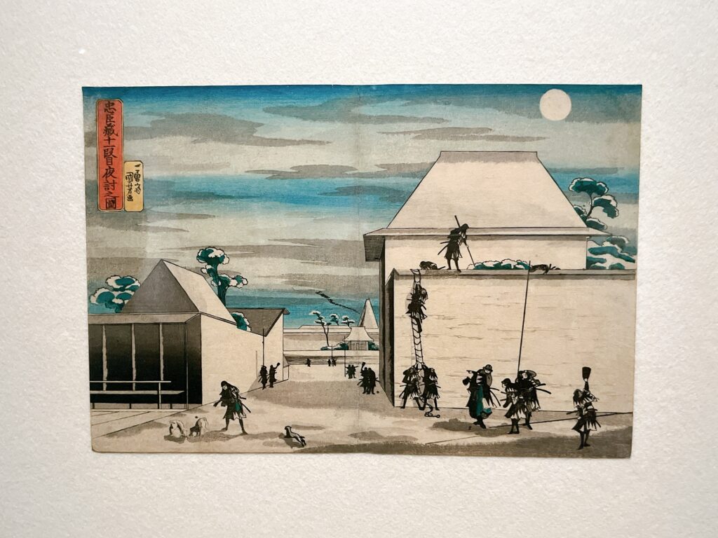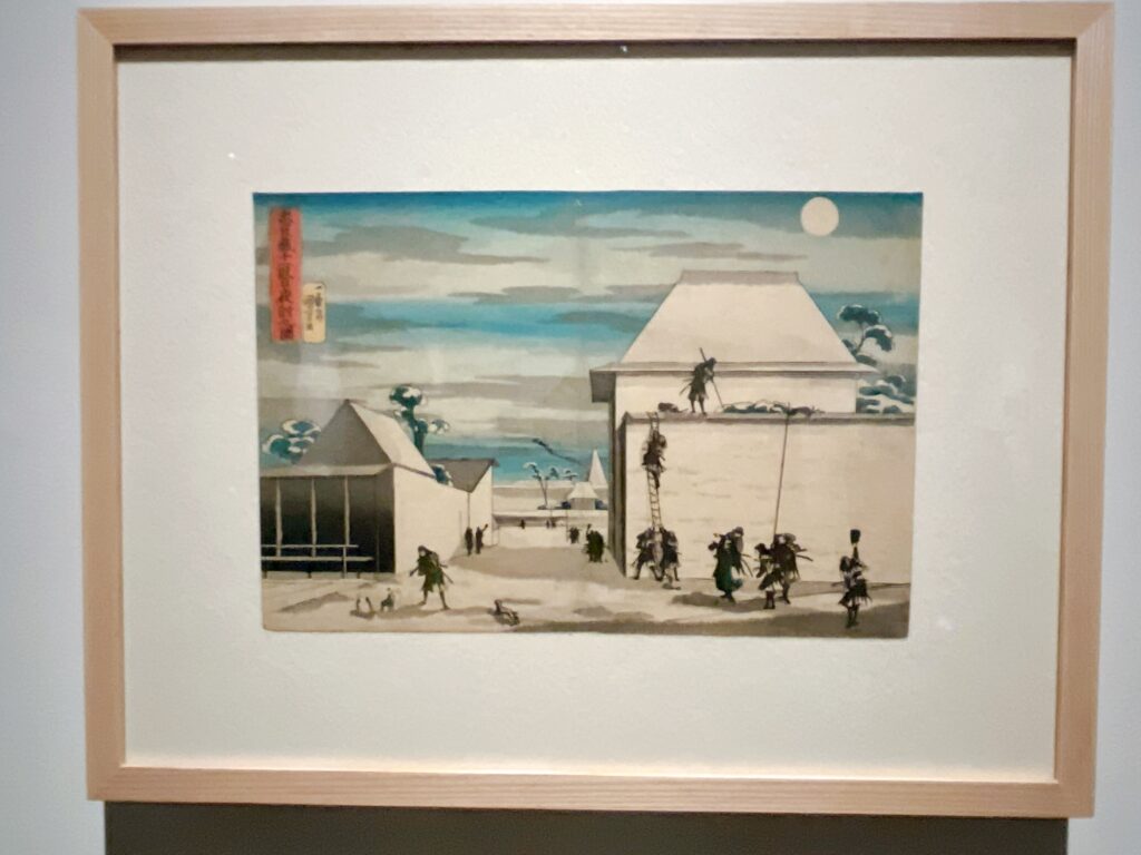 吉良邸、討ち入り。国芳にしては静かな作品やけど、