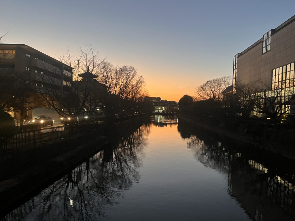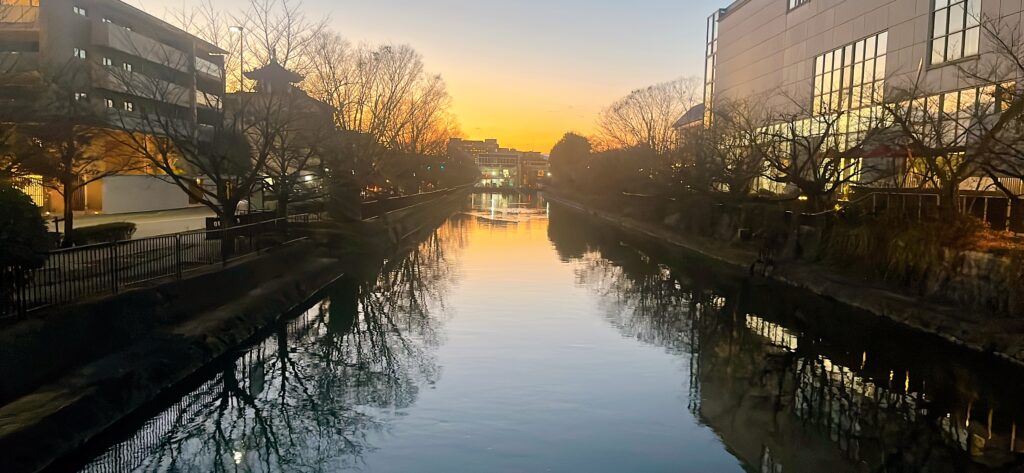 岡崎公園の疏水から見える夕暮れがなかなかだった。