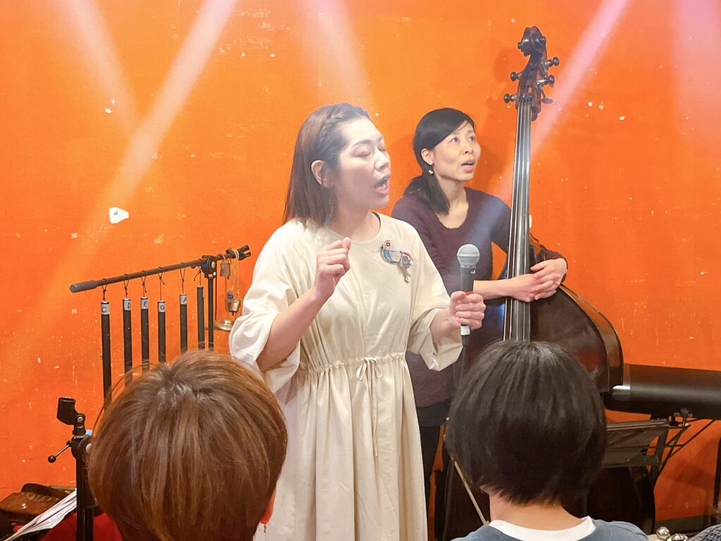 詩人の詩に曲をつけて歌う、ウッドベースとボーカルの女性二人組。