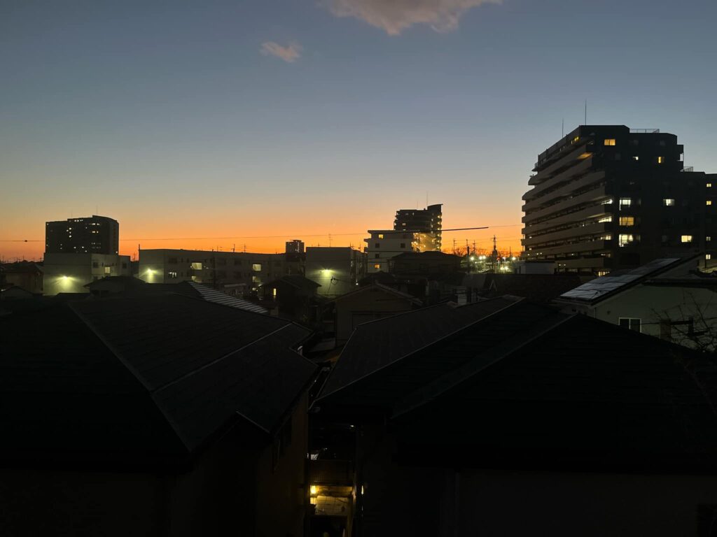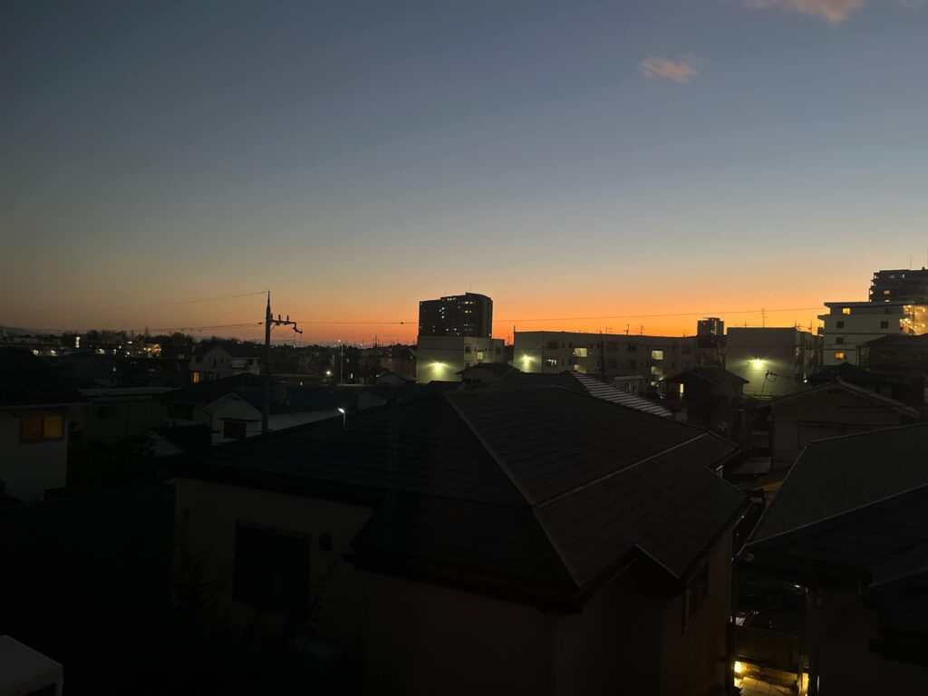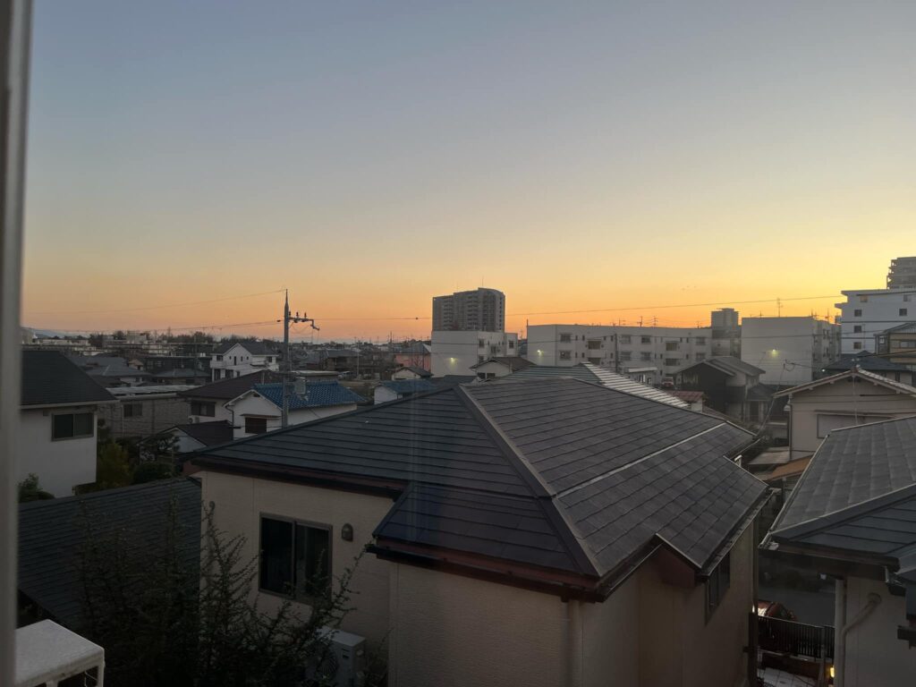 実家からの夕暮れを、