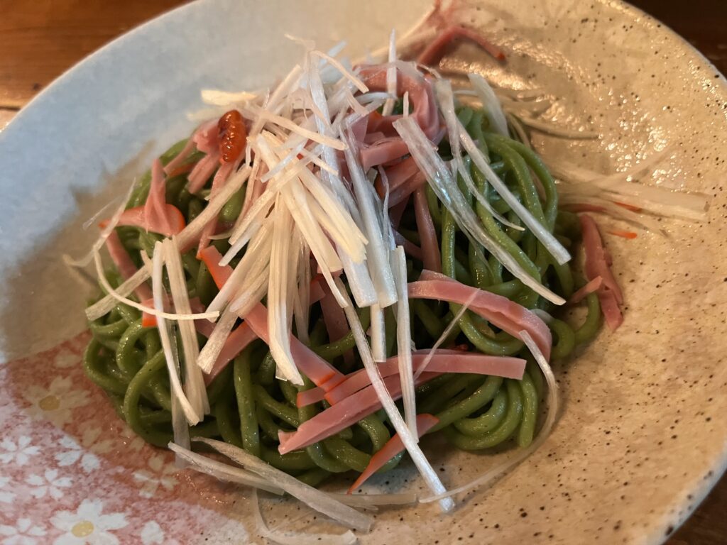 ユーグレナそばだったかな?のペペロンチーノ。