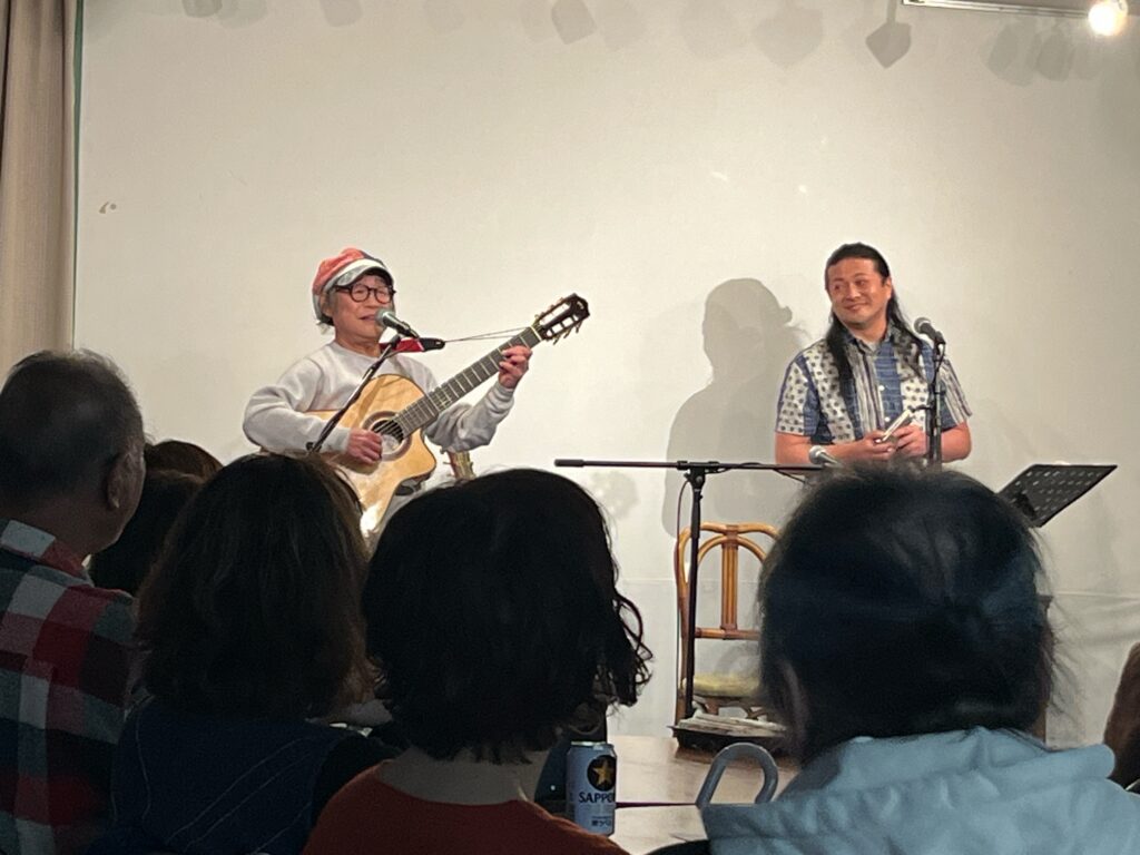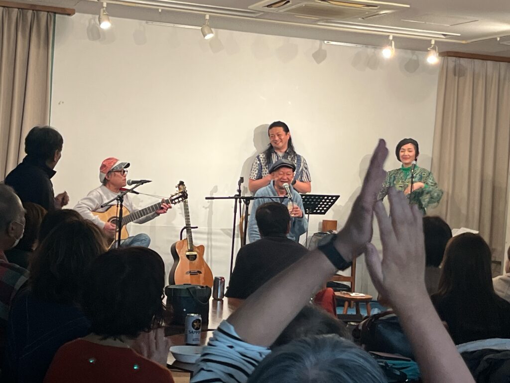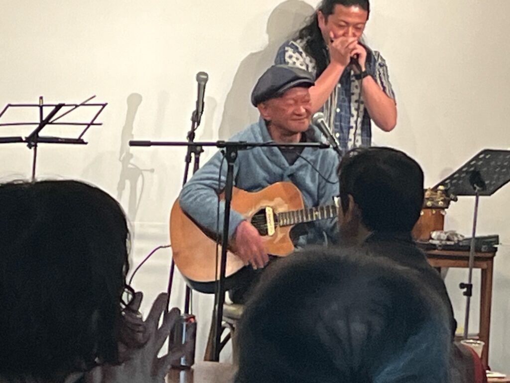 既に始まってて、ハーモニカの皆川和義さんをステージに呼ぶところ。