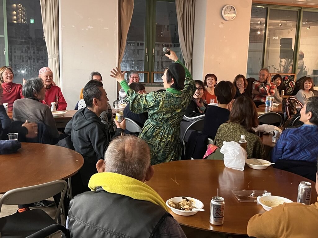 映美さんが、カオリーニョさんに江州音頭を頼む。