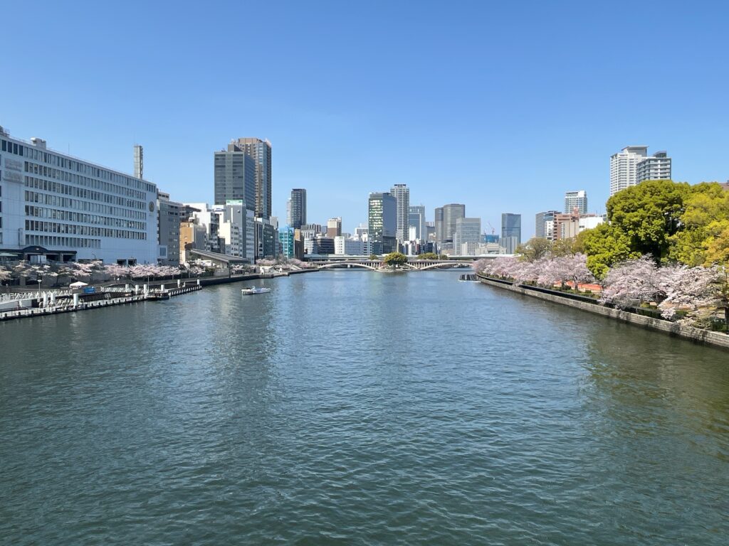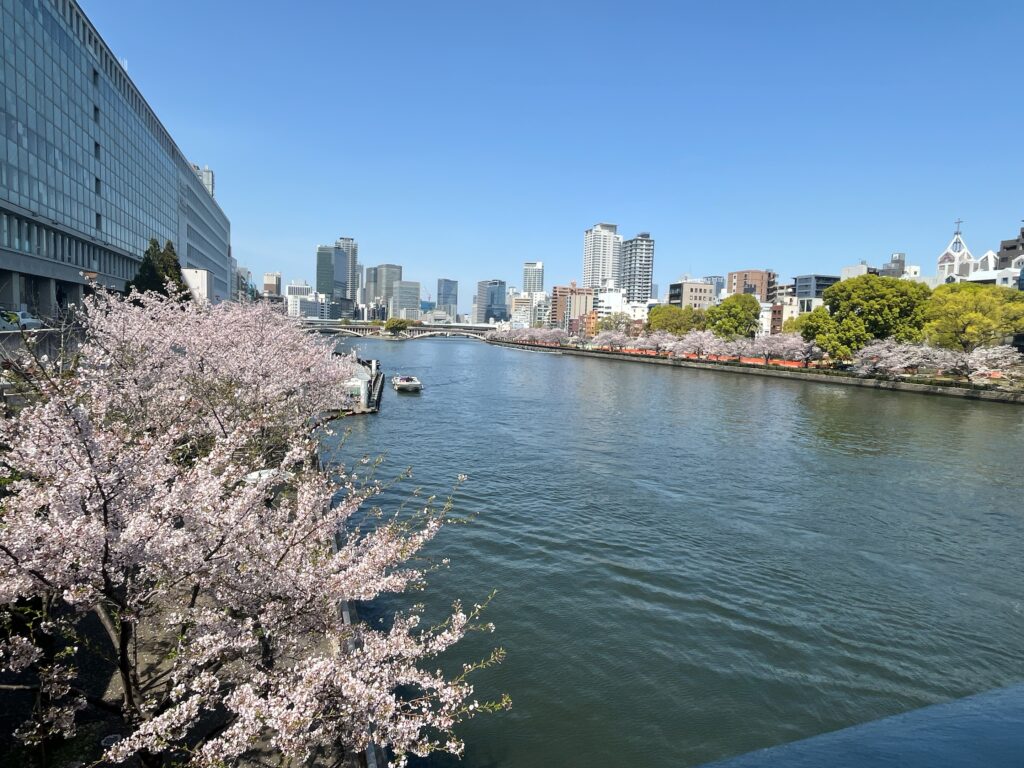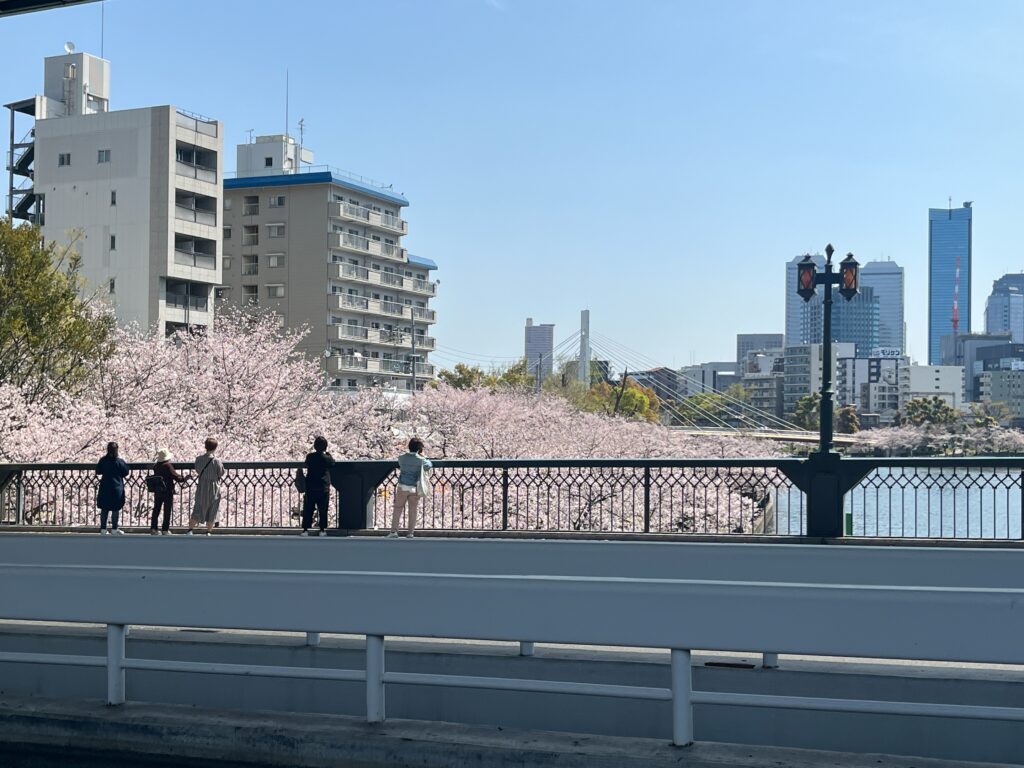 まずは天満橋から大川の桜を。