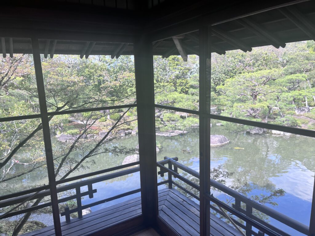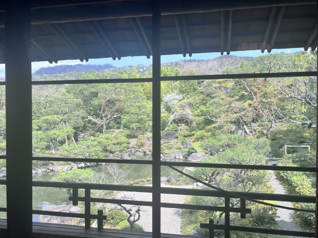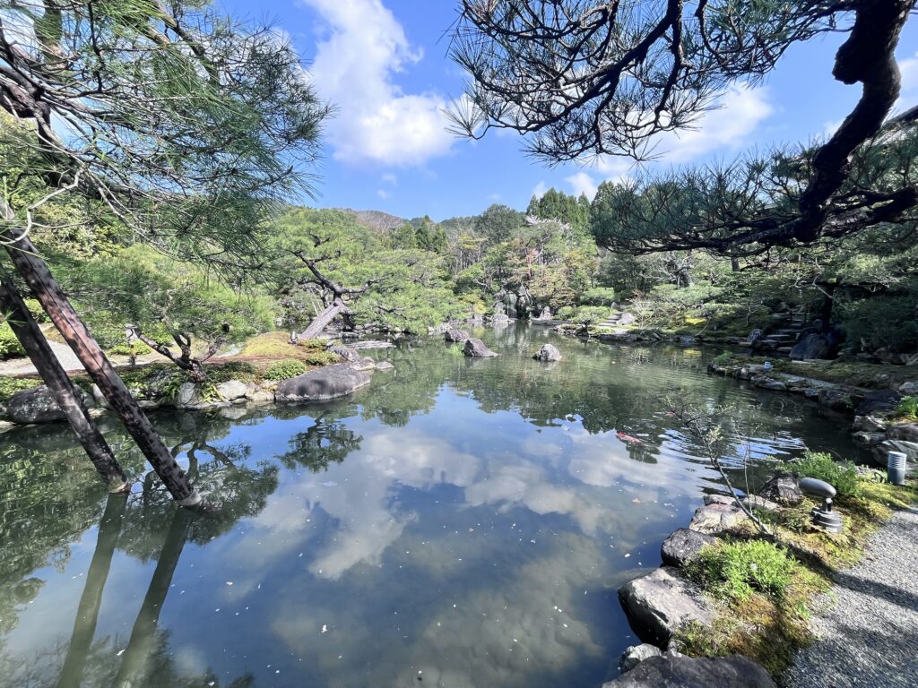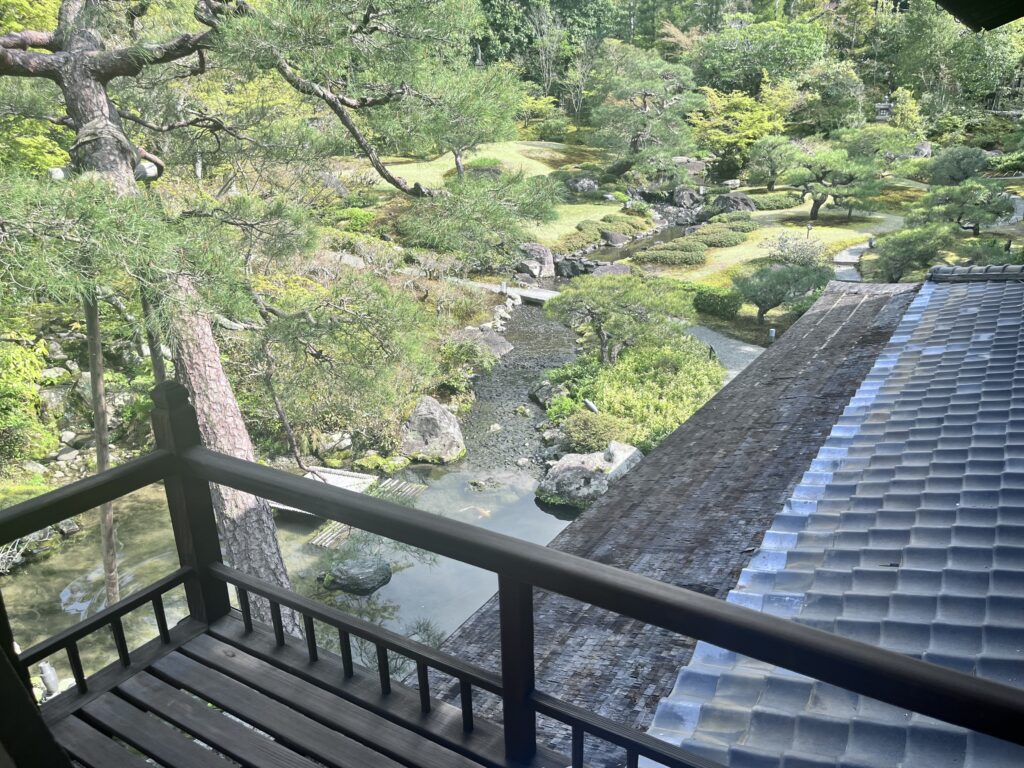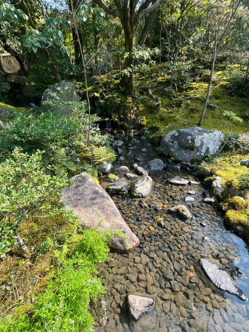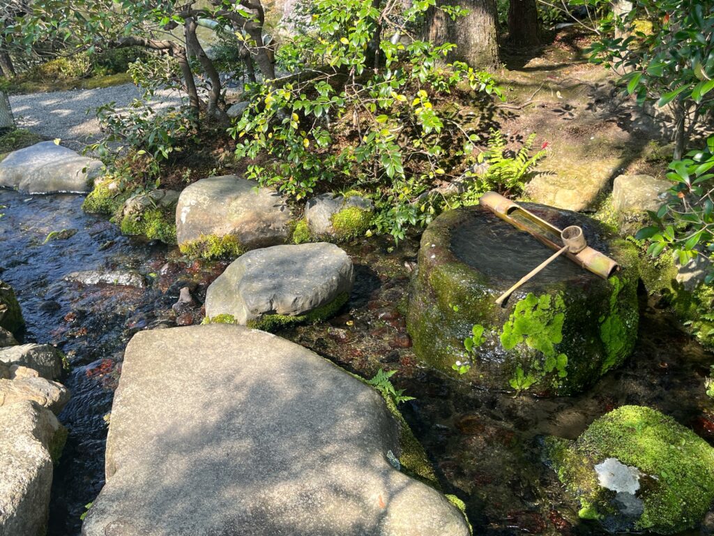 庭としての美しさ、東山の借景、建物と絡める水の流れの巧みさ、