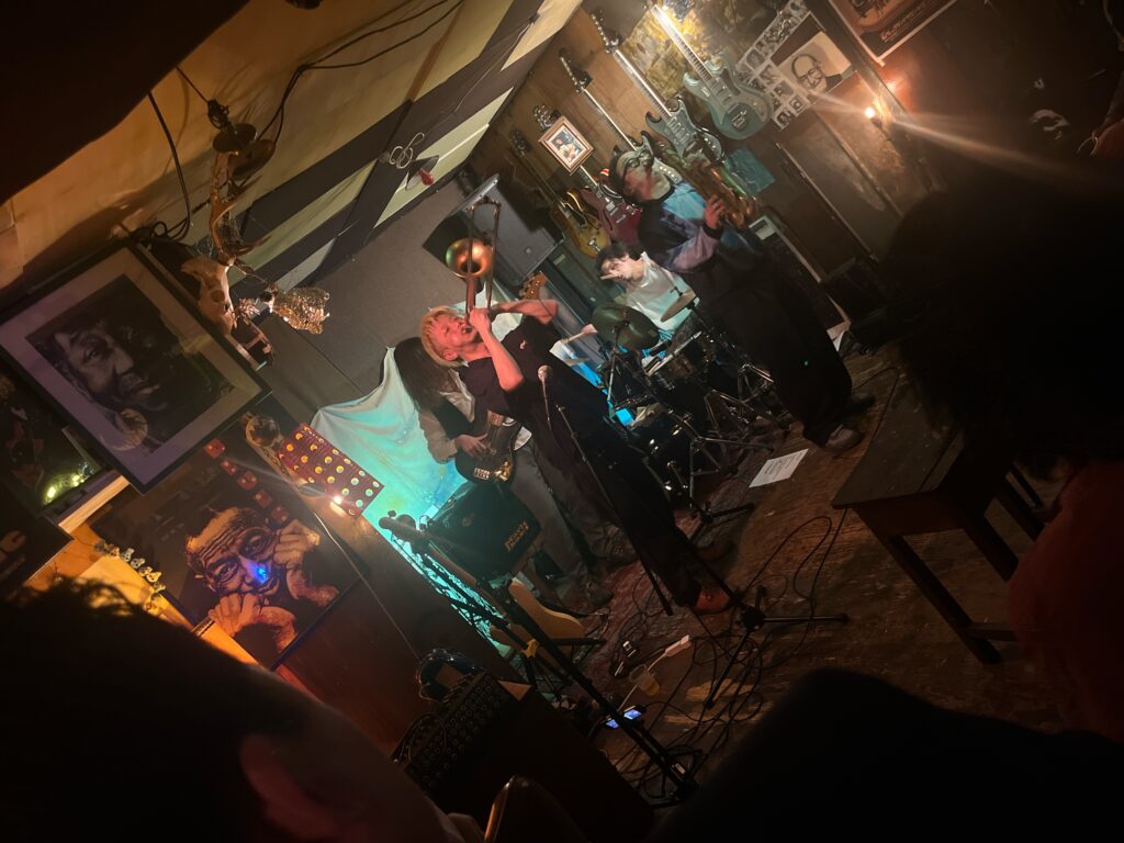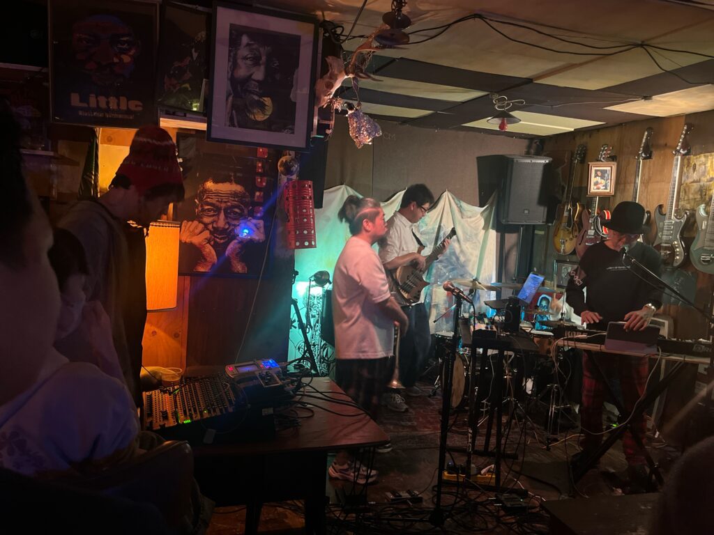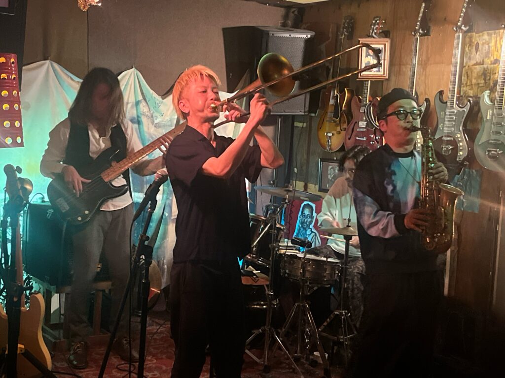 ドラム、5弦ベース、鍵盤、トランペット&プログラム、PA卓って編成で、