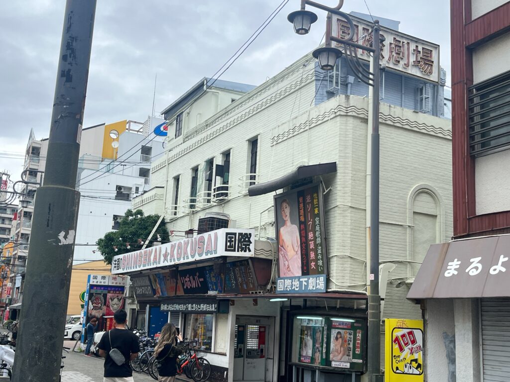 今どき珍しい手描き看板の名作映画とピンク映画の新世界国際会館、