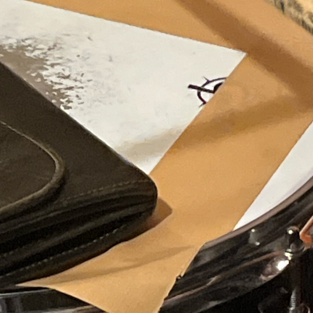 ドラムの皮に貼ったガムテが、ロゴの一部隠して、
