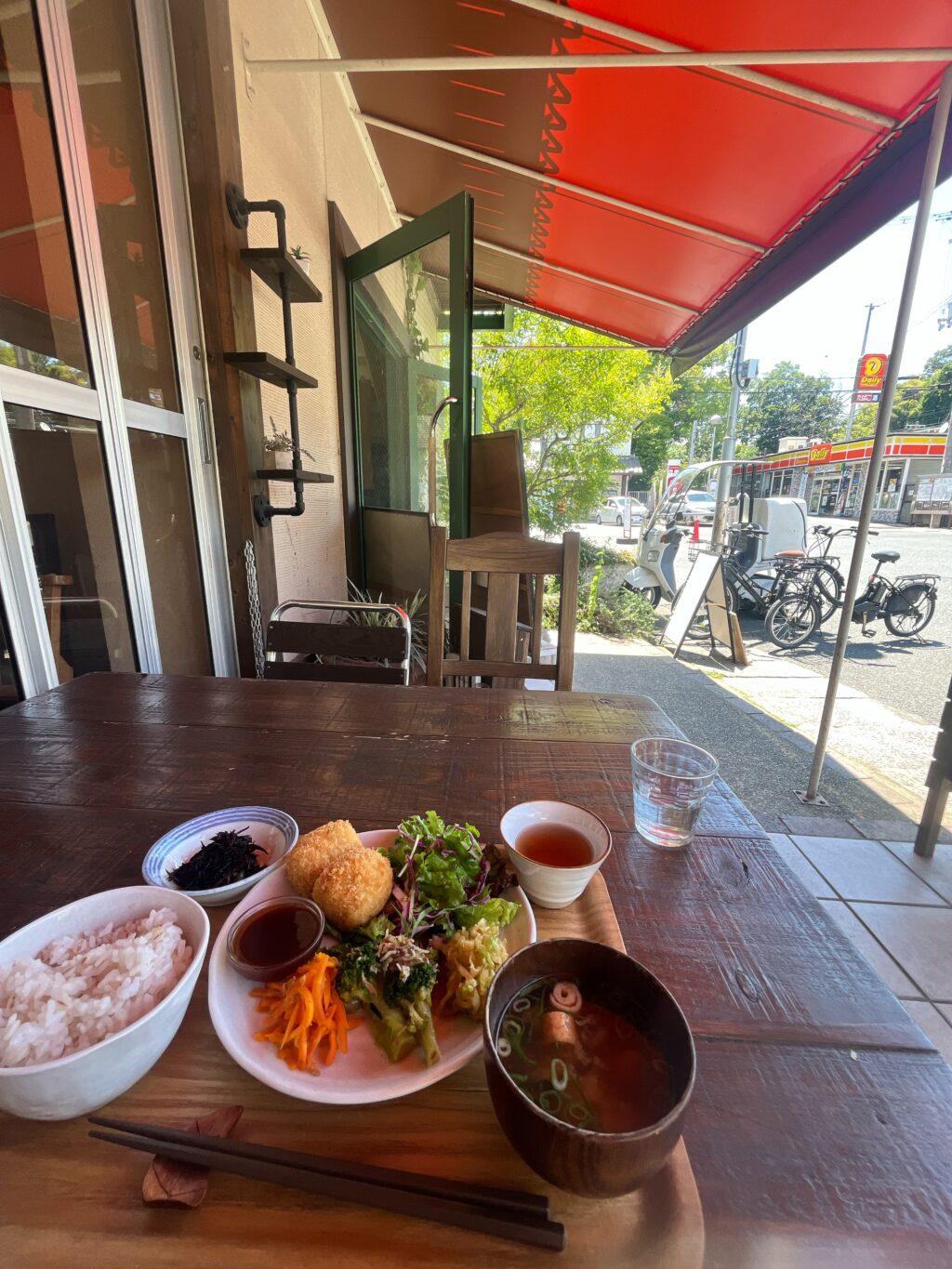 JR山崎駅前の「Cafe tabitabi」のテラス席が好きで、