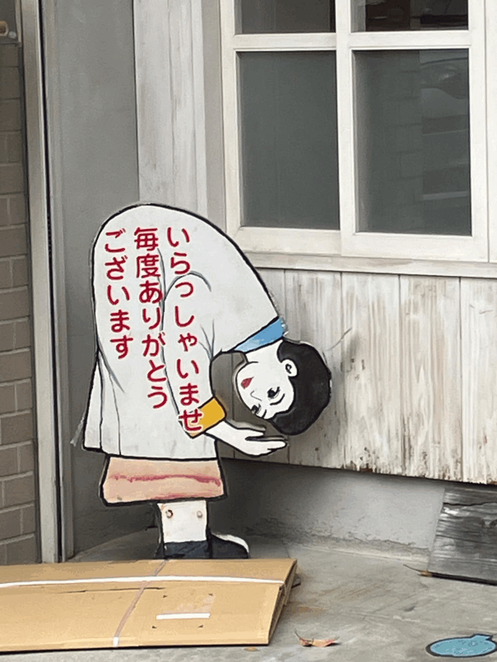 ちょうど、店長さんが庇をつけるとかの作業してはるとこで、