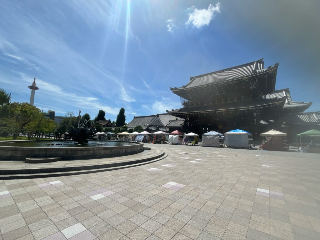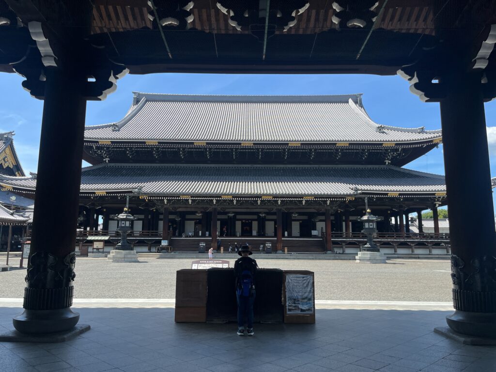 西側は、世界最大級の木造建築、御影堂に遮られて、