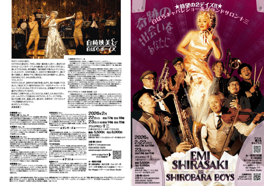 白崎映美&白ばらボーイズ@グランドサロン十三、チケット販売開始。