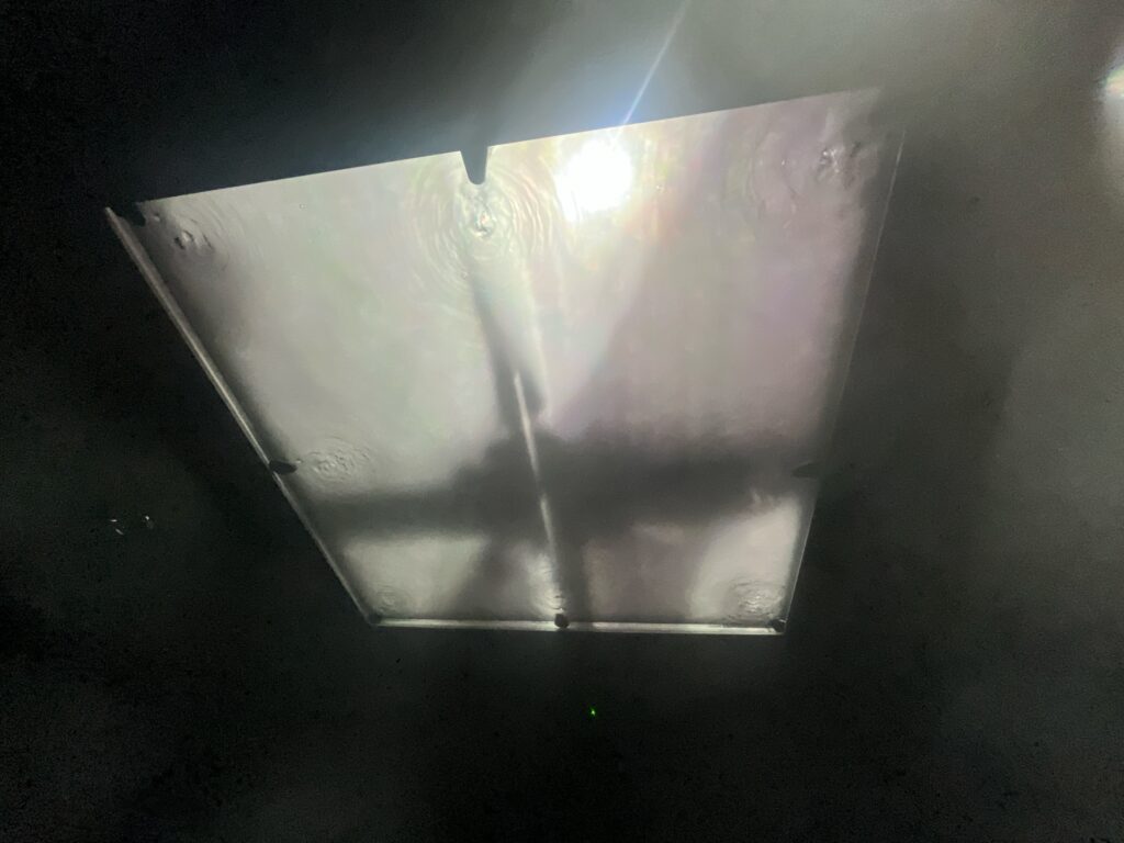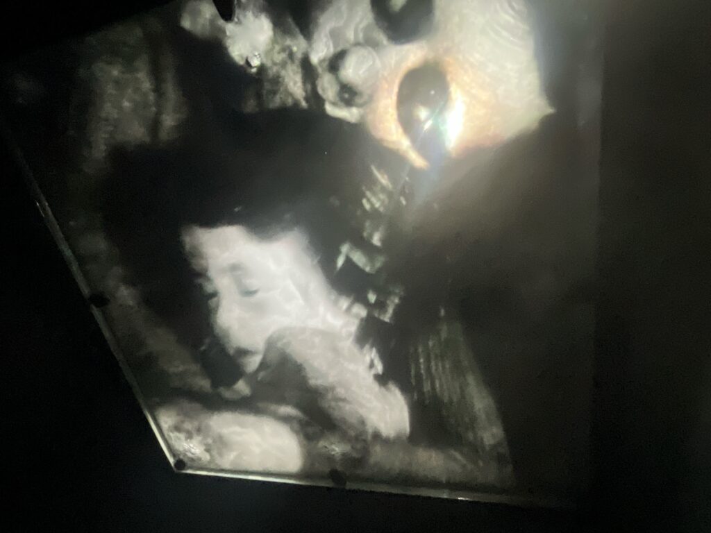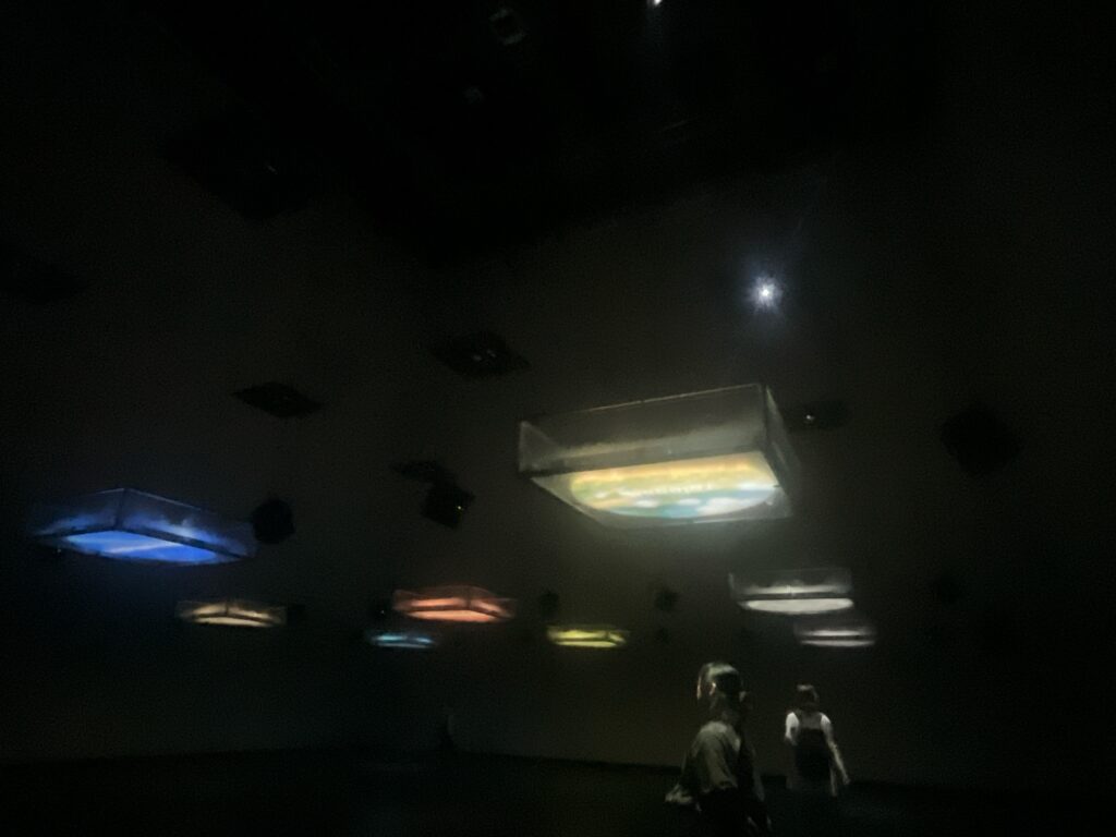 初めの部屋は、幅のある透明のスクリーンみたいなんを真下から観上げる。