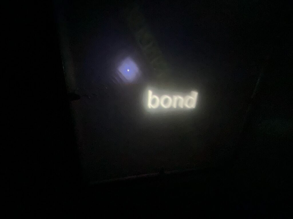 スクリーンに映る映像、青の向こうにある天井、