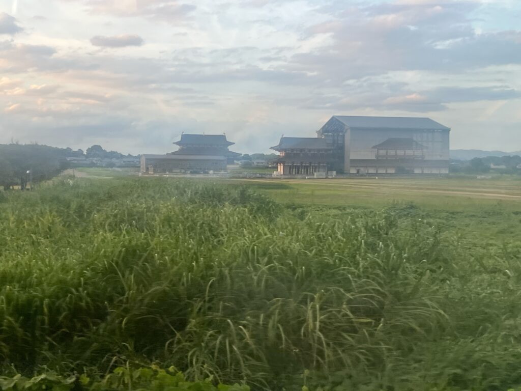 帰りの近鉄、ちょっとええ感じの時間に平城宮趾を通過、