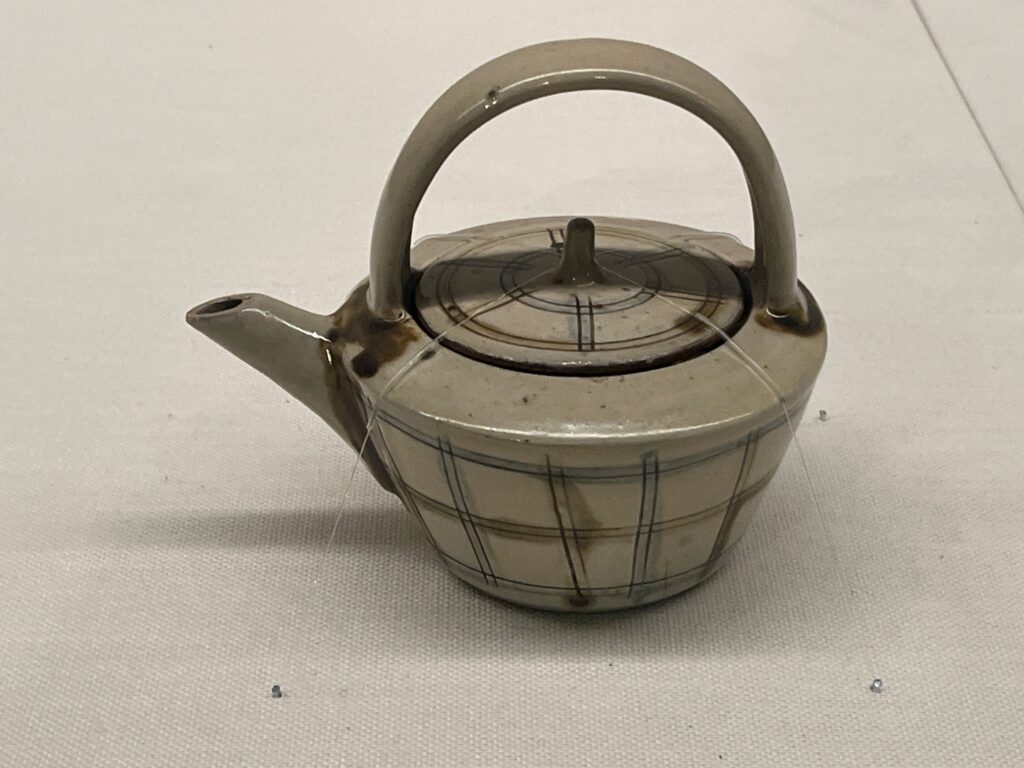 濱田庄司さんの「琉球彫絵色差格子文共手付土瓶」。