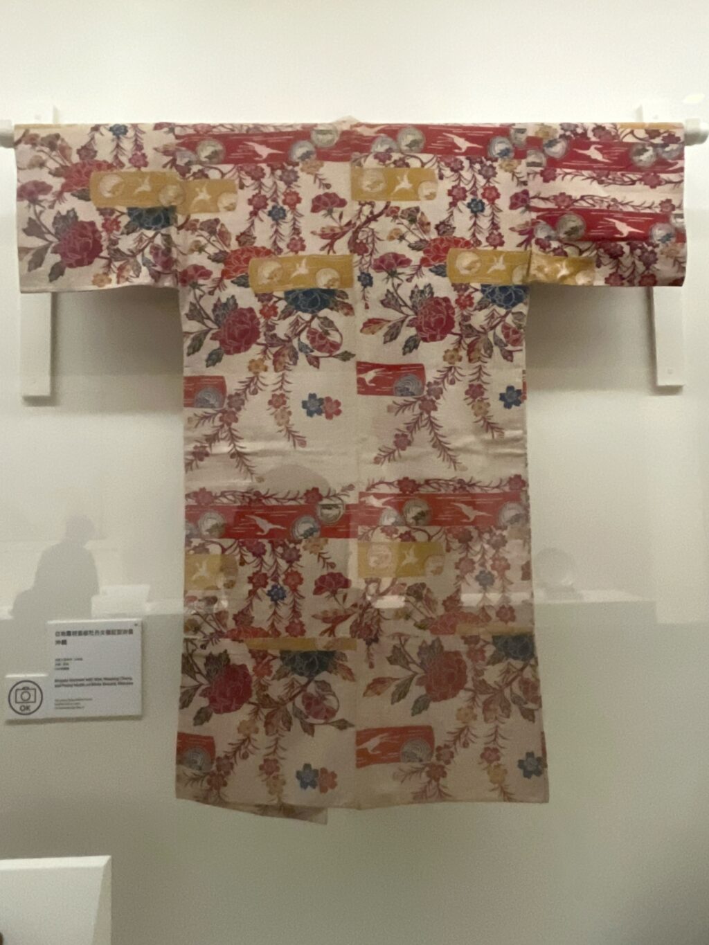 琉球王朝時代、19世紀の「白地霞枝垂桜牡丹文樣紅型衣裳」。
