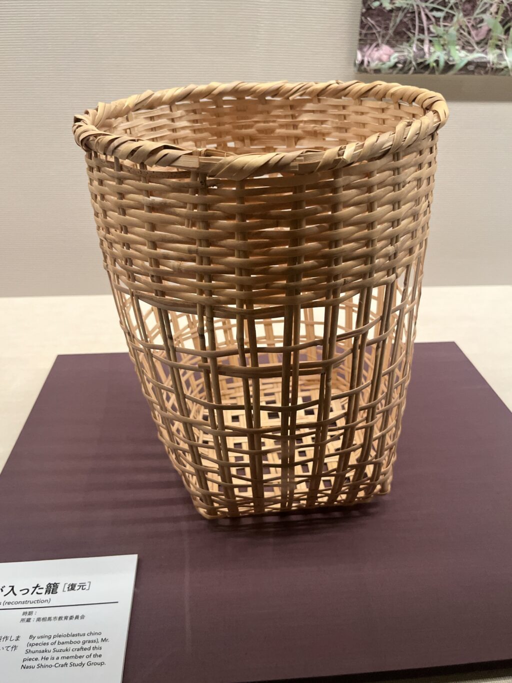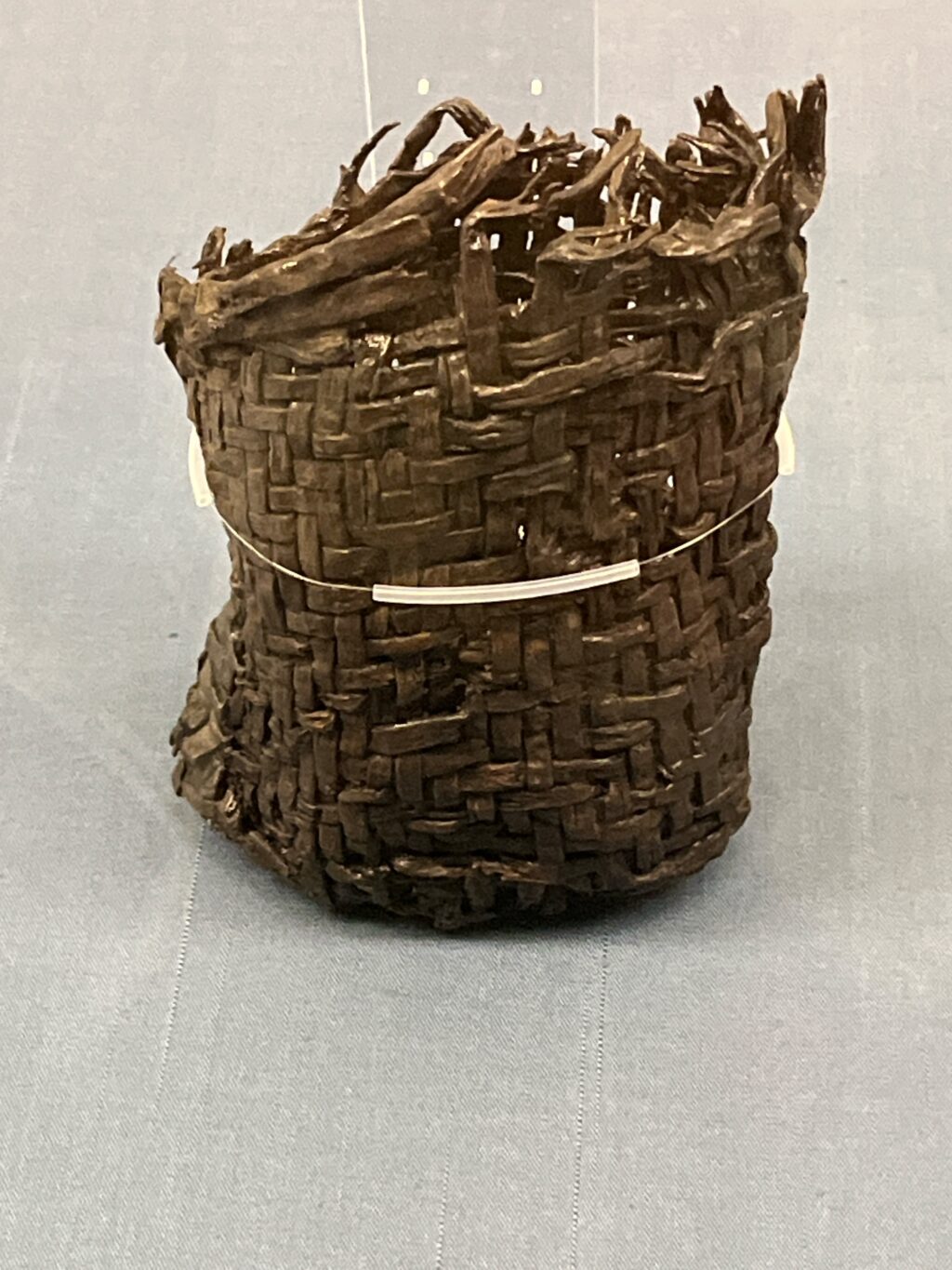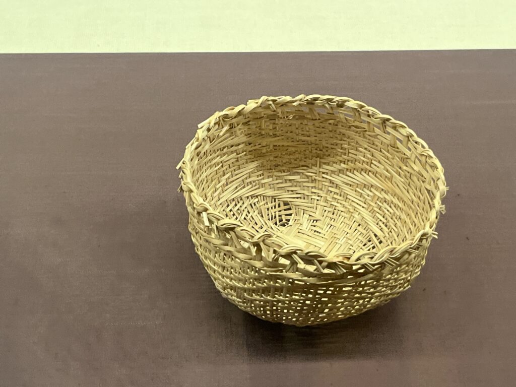 これも、複製ですが、ヒノキの内樹皮を編み込んだ編籠。