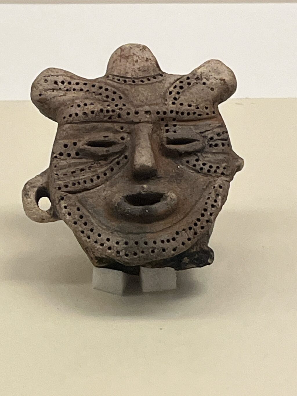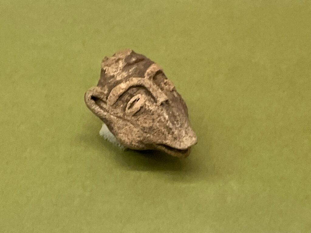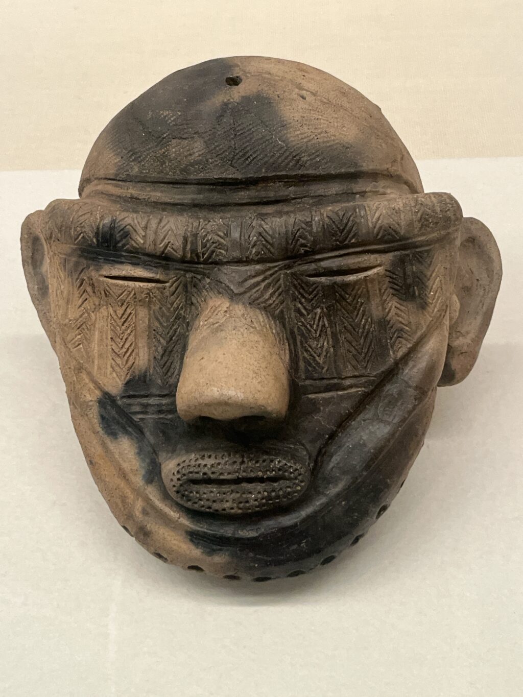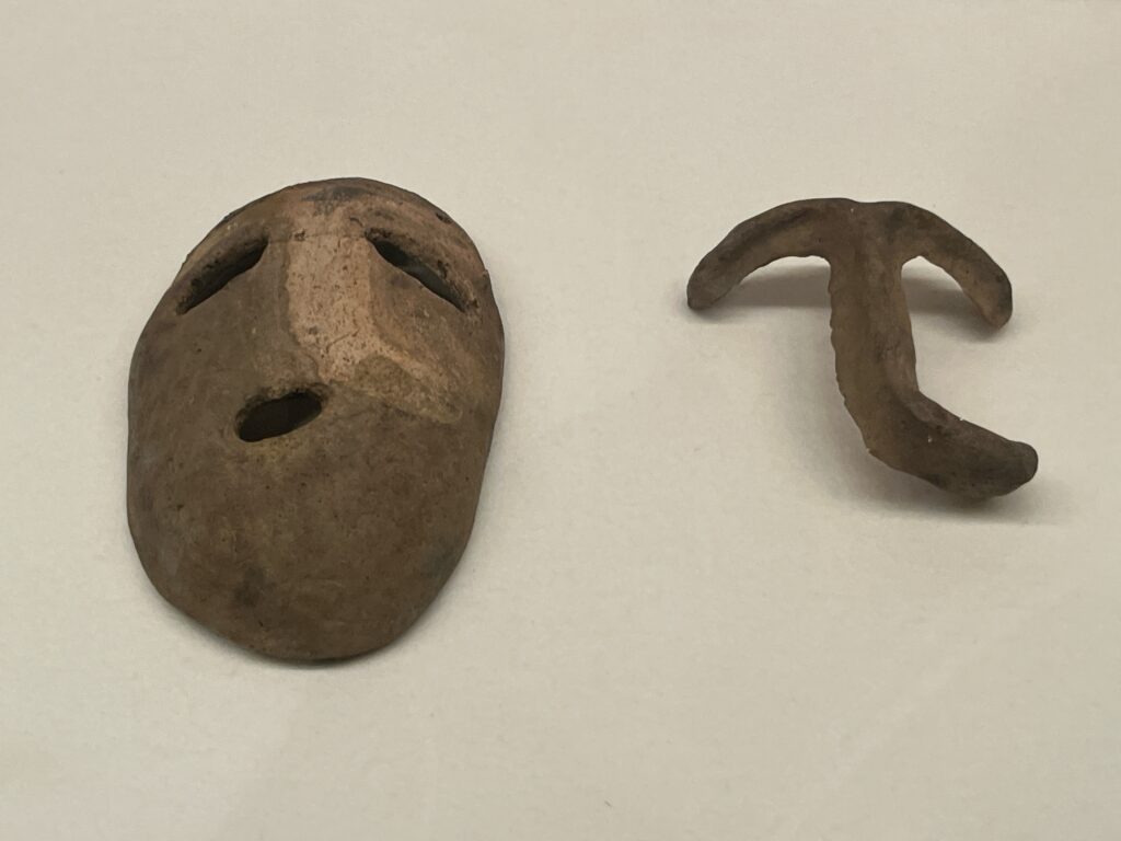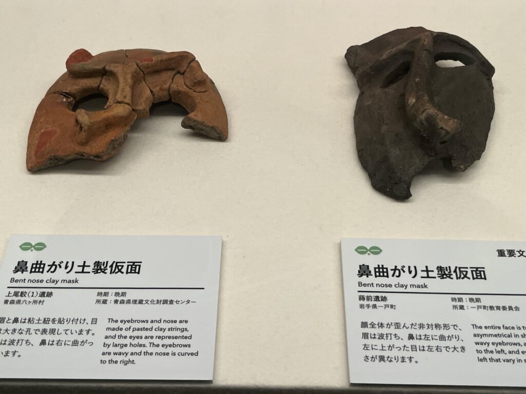 「鼻曲がり土製仮面」。眉と鼻を取り付けるらしい。