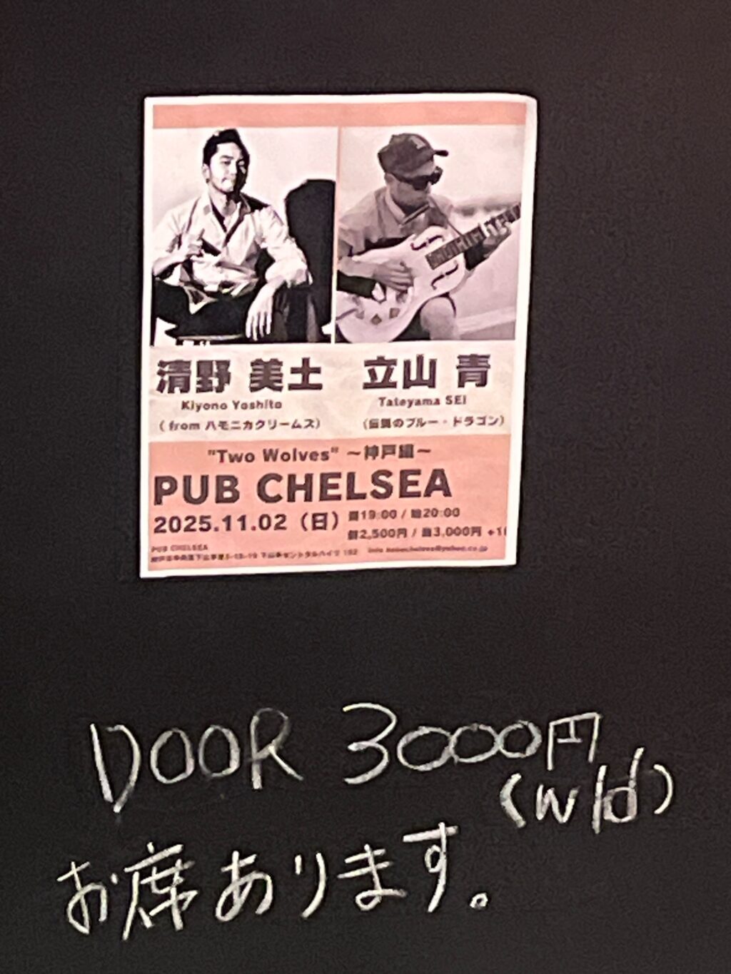 「立山青 presents”Two Wolves”〜2匹のオオカミ〜」立山青&清野美土@PUB CHELSEA。