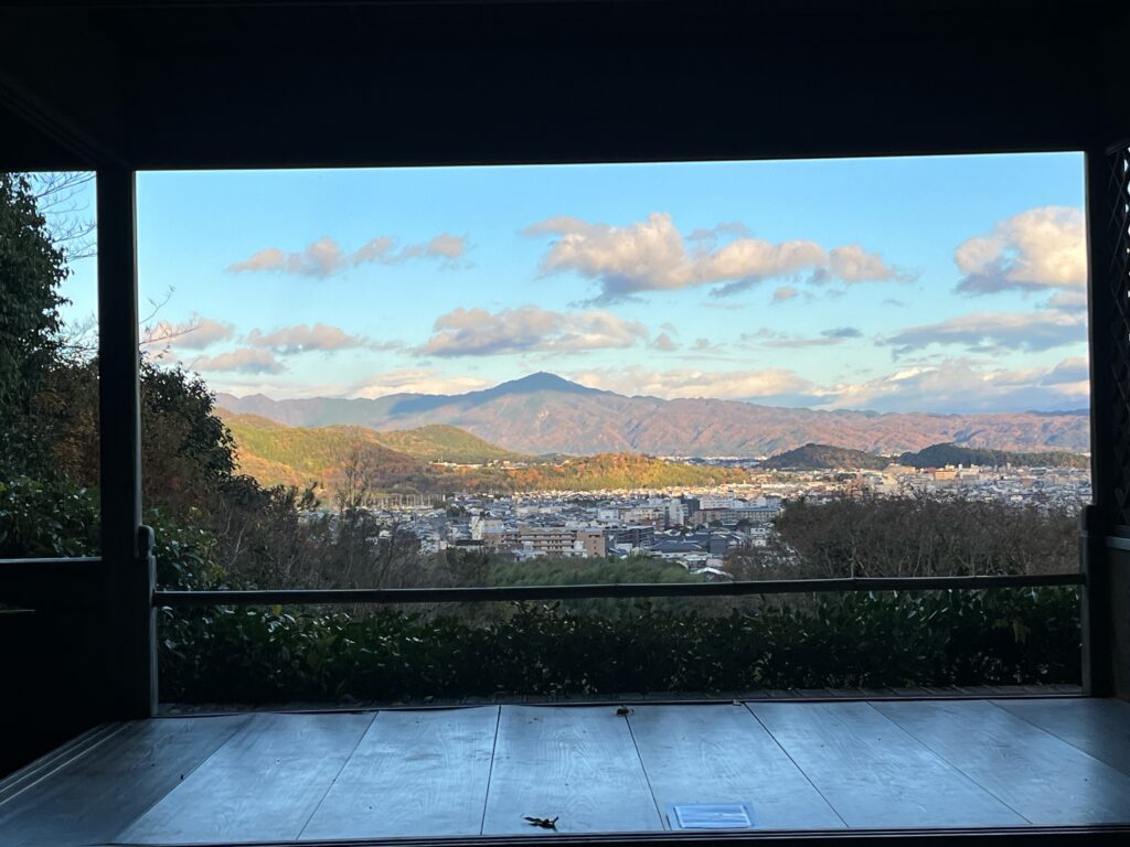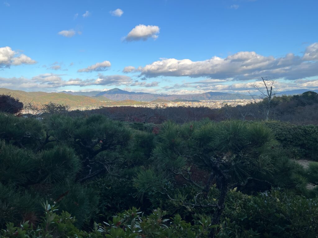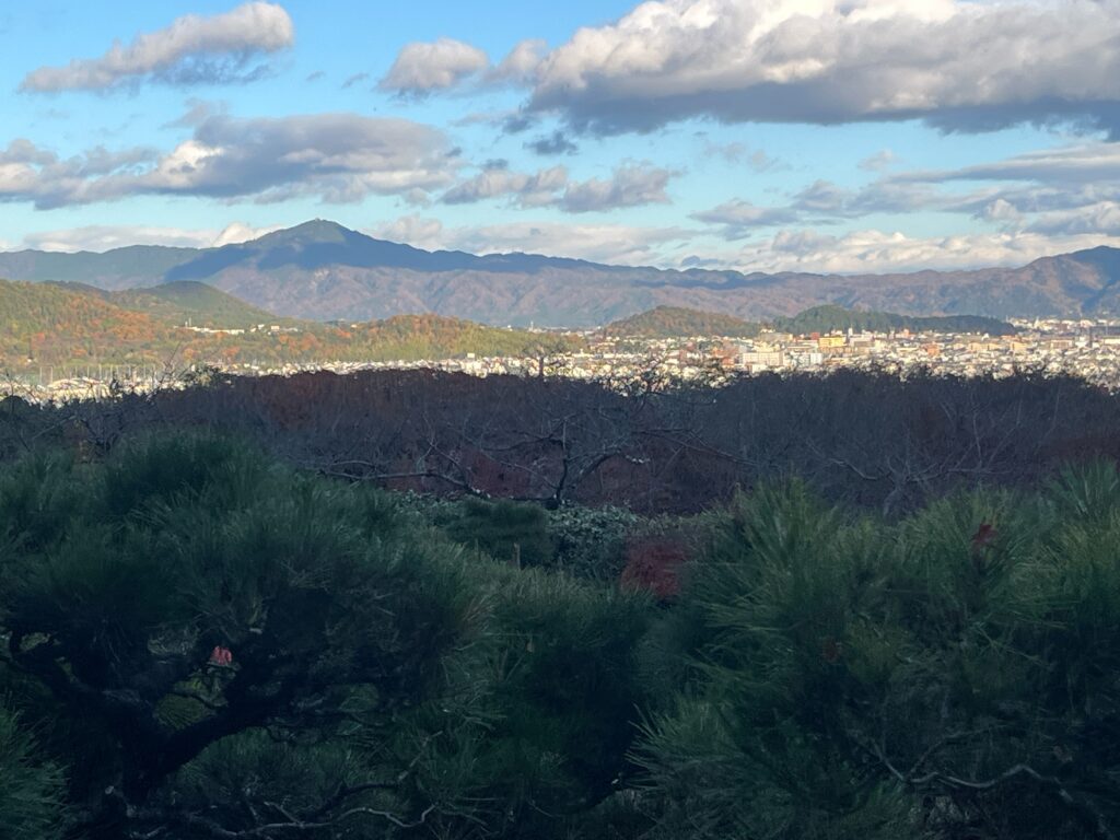 それを挟んで、嵐山の大悲閣千光寺が見える。