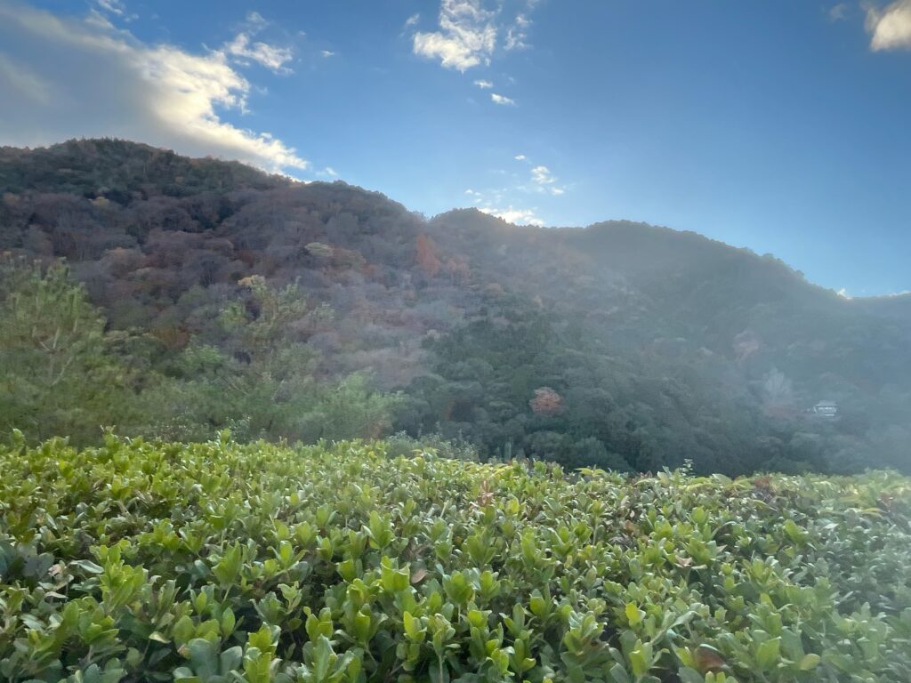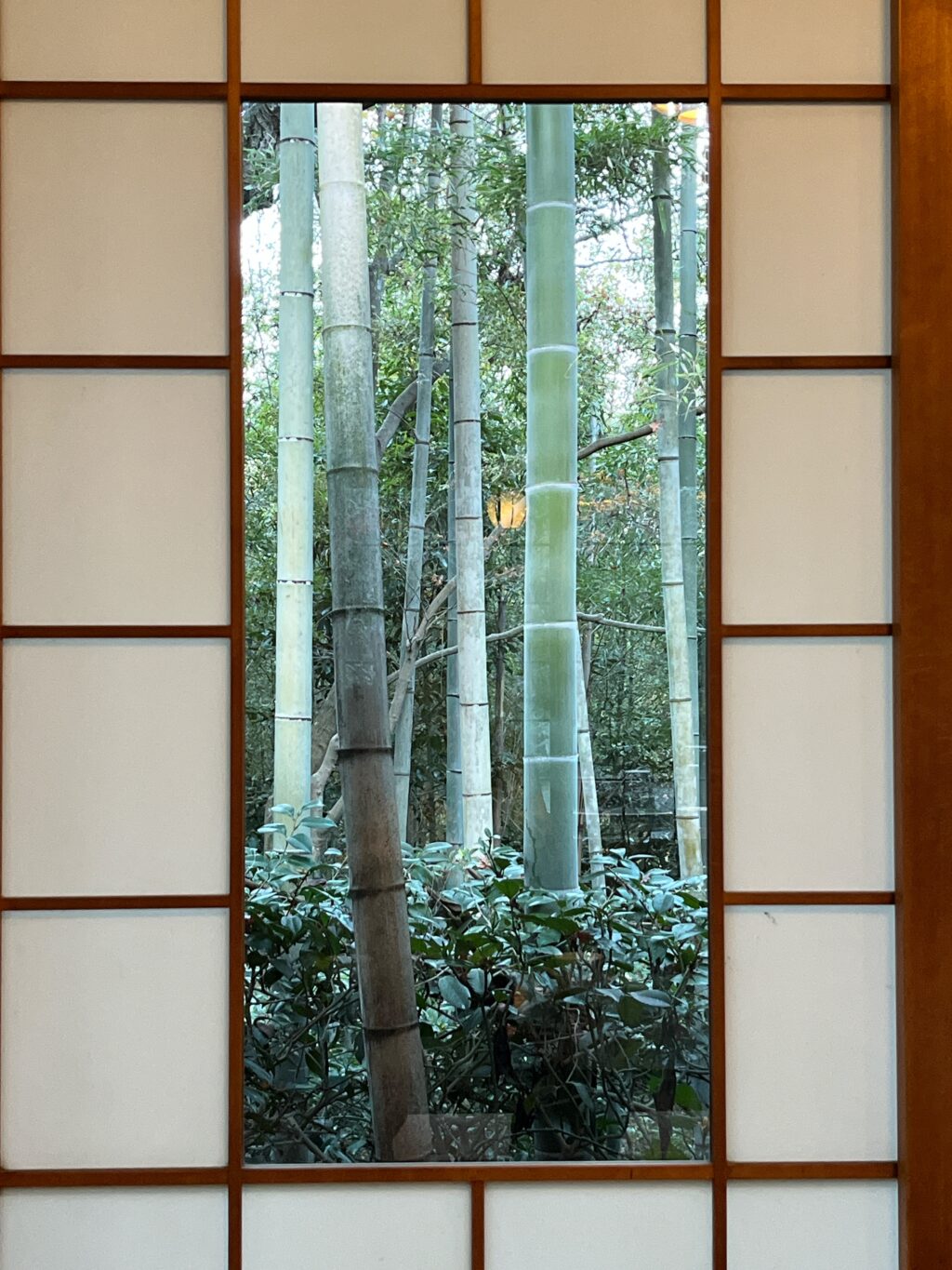 休憩所は敷地の一番下あたりにあるので、窓の向こうは嵯峨野の竹林です。