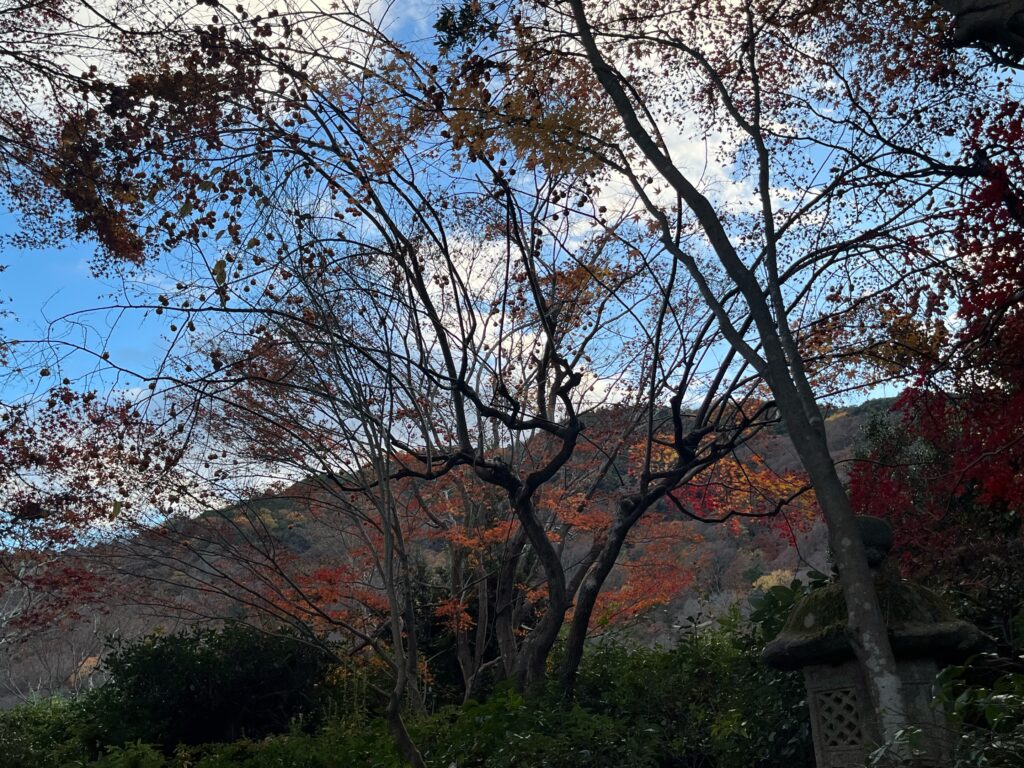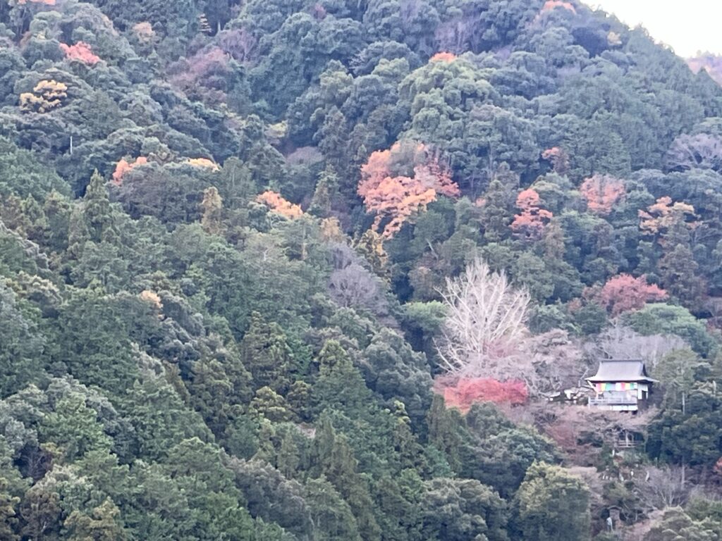 大悲閣千光寺のある嵐山の北斜面より、まだ紅葉が残ってる。
