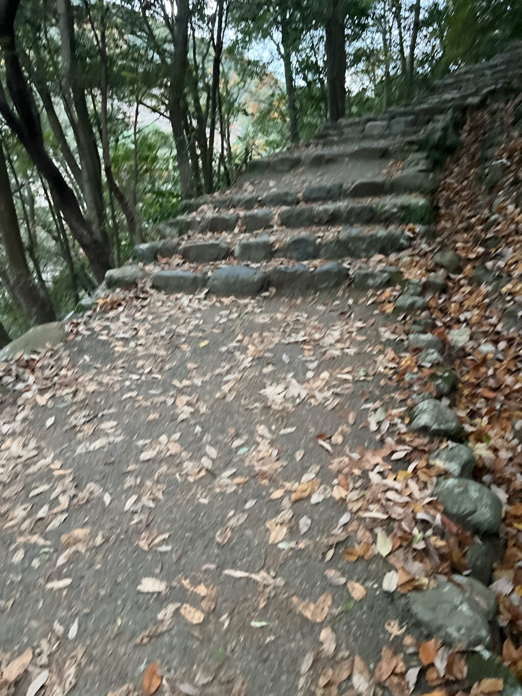 途中から急に薄暗く、木立の迫ったきつい石段が始まった。