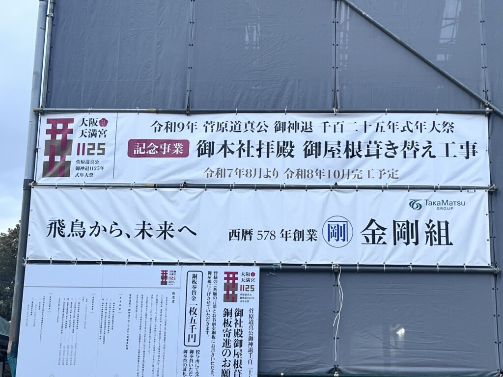 今、拝殿、屋根の葺き替え工事中なんやね。