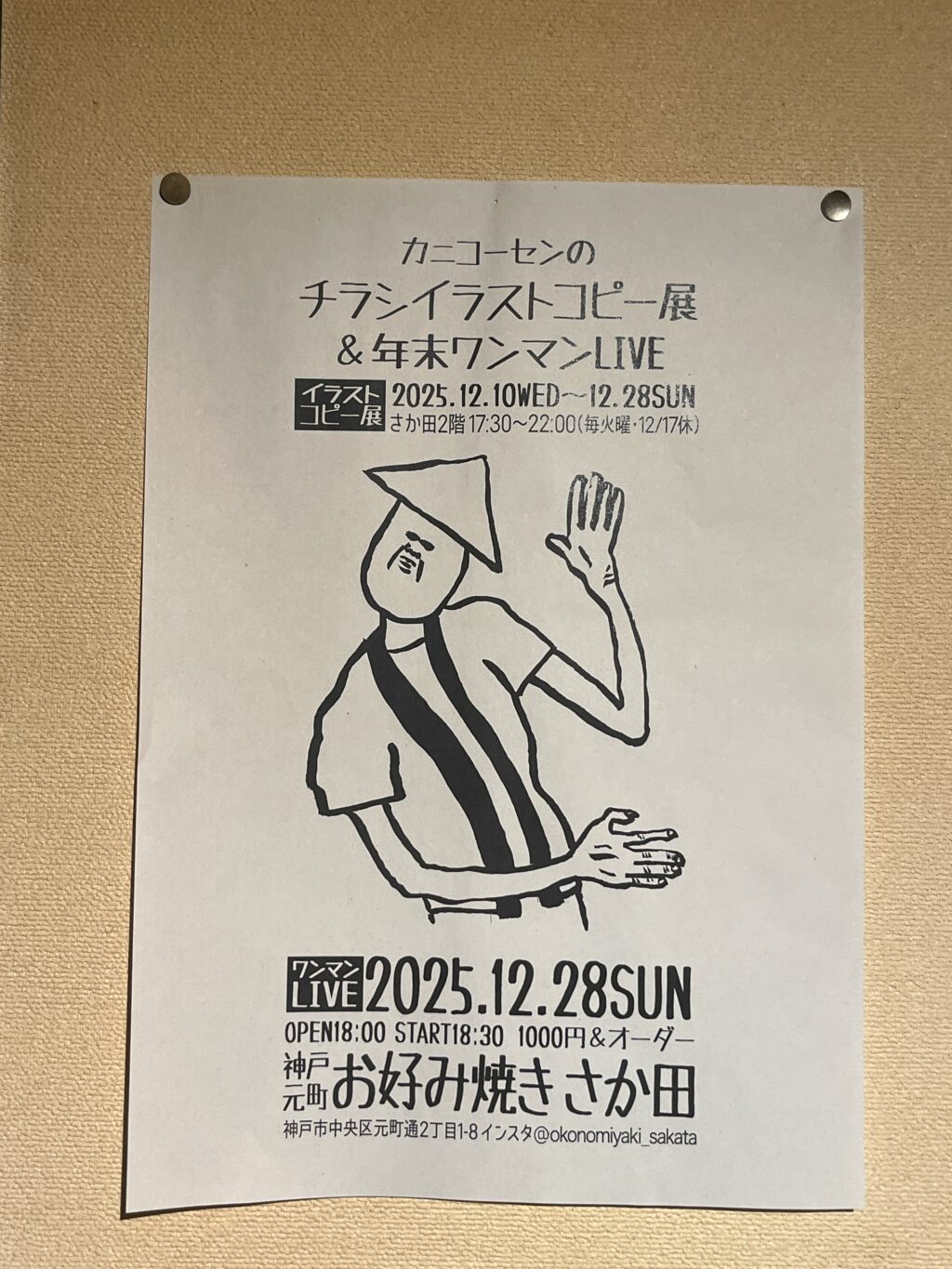 カニコーセンのチラシイラストコピー展@元町お好み焼き さか田。