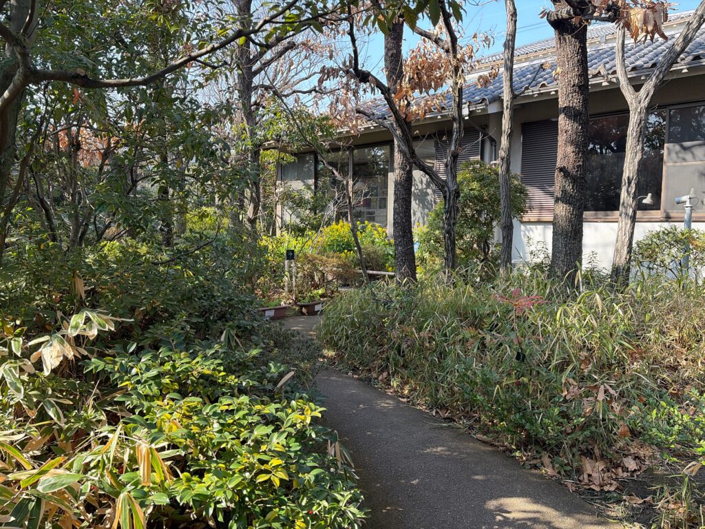 意図的に、あまり手を入れてないかのような緑に覆われている。