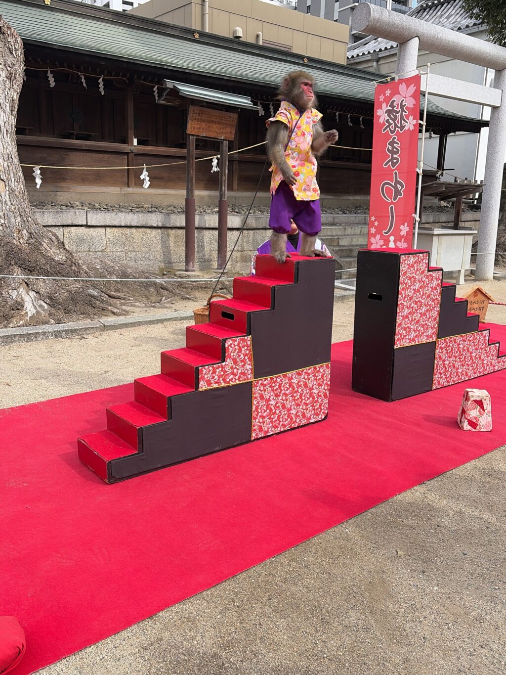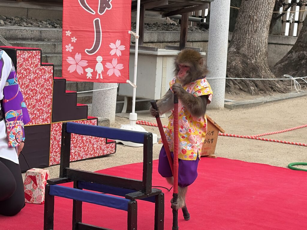 おお!いきなり猿回しに遭遇。