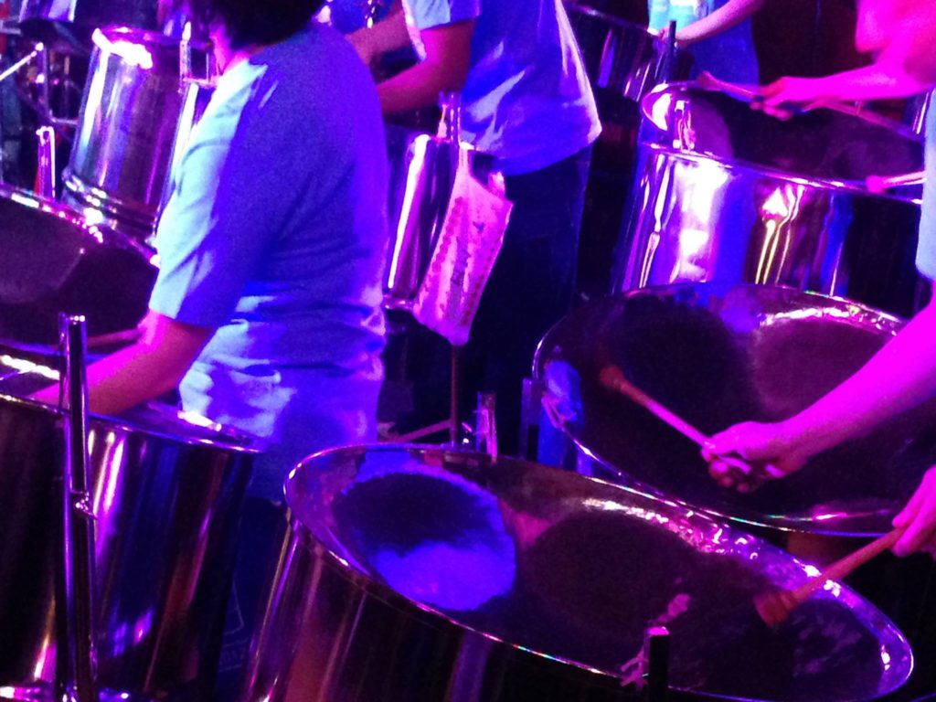 30台近くのスティールパンがステージを埋め尽くす。