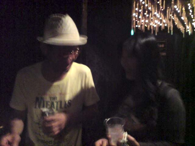 喫煙ゾーンにて、ハッチハッチェルさん&ムジカのせい子さん。